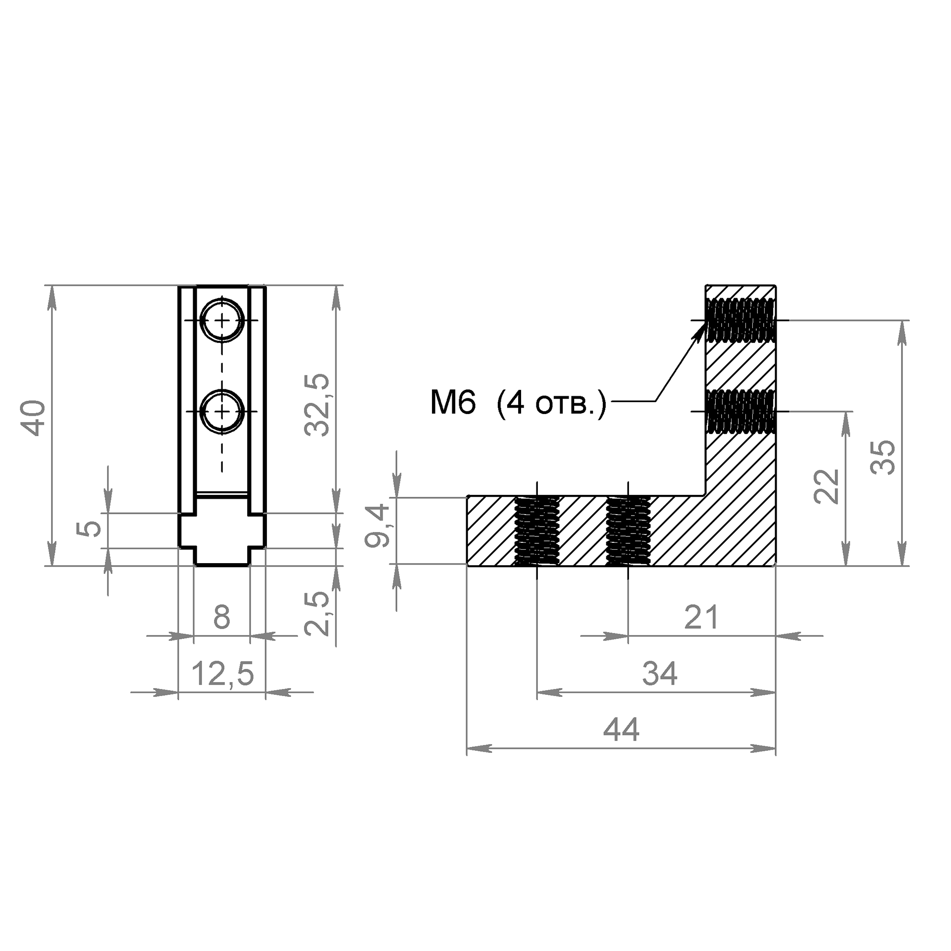 2058 | Внутренний угловой соединитель, серии 30 и 40, с пазом 8 мм