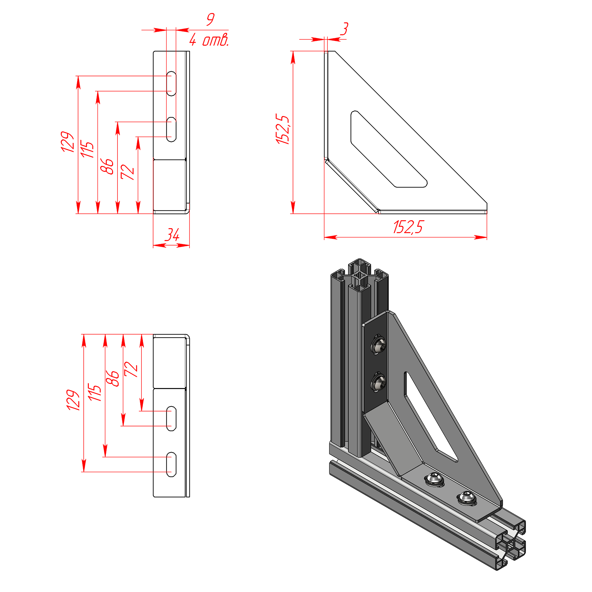 8211s | Стальной угловой соединитель 40х80 мм сталь 8 мм