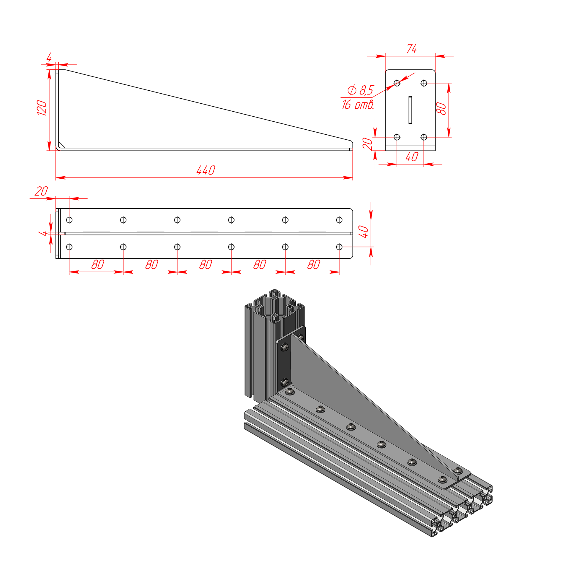 82.120.280s | Стальной угловой соединитель 120х280х74 мм