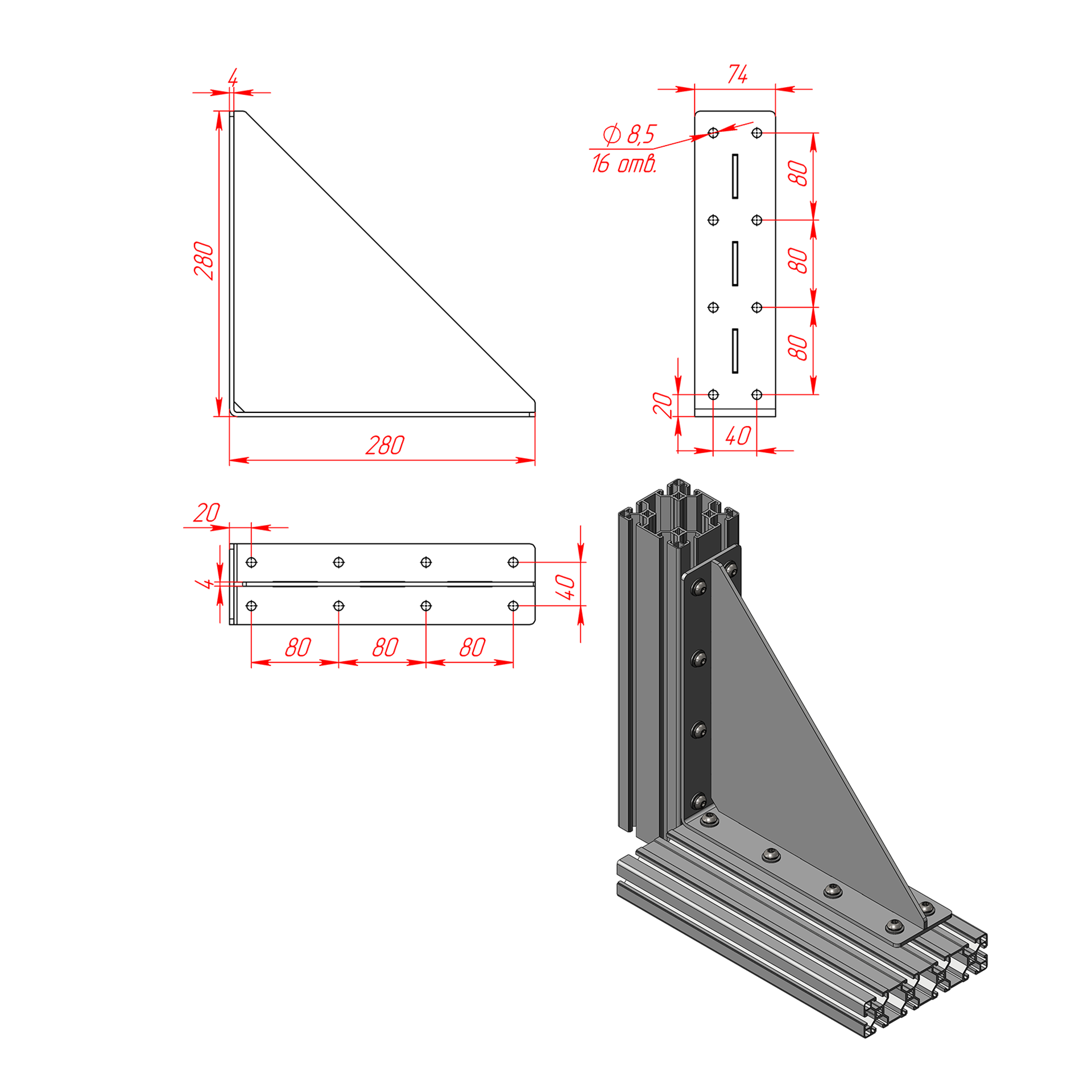 82.280.440s | Стальной угловой соединитель 280х440х74 мм