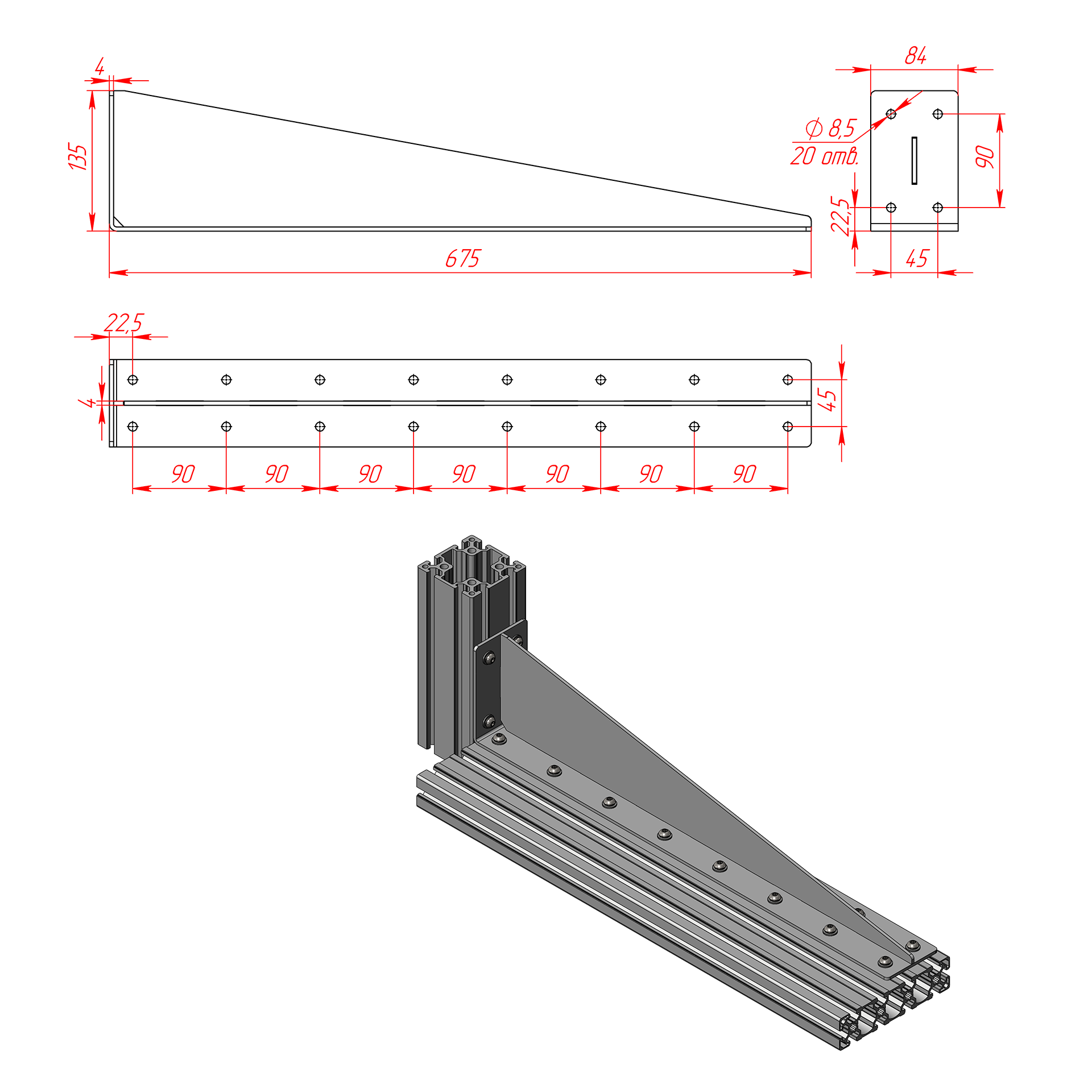 83.135.495s | Стальной угловой соединитель 135х495х84 мм