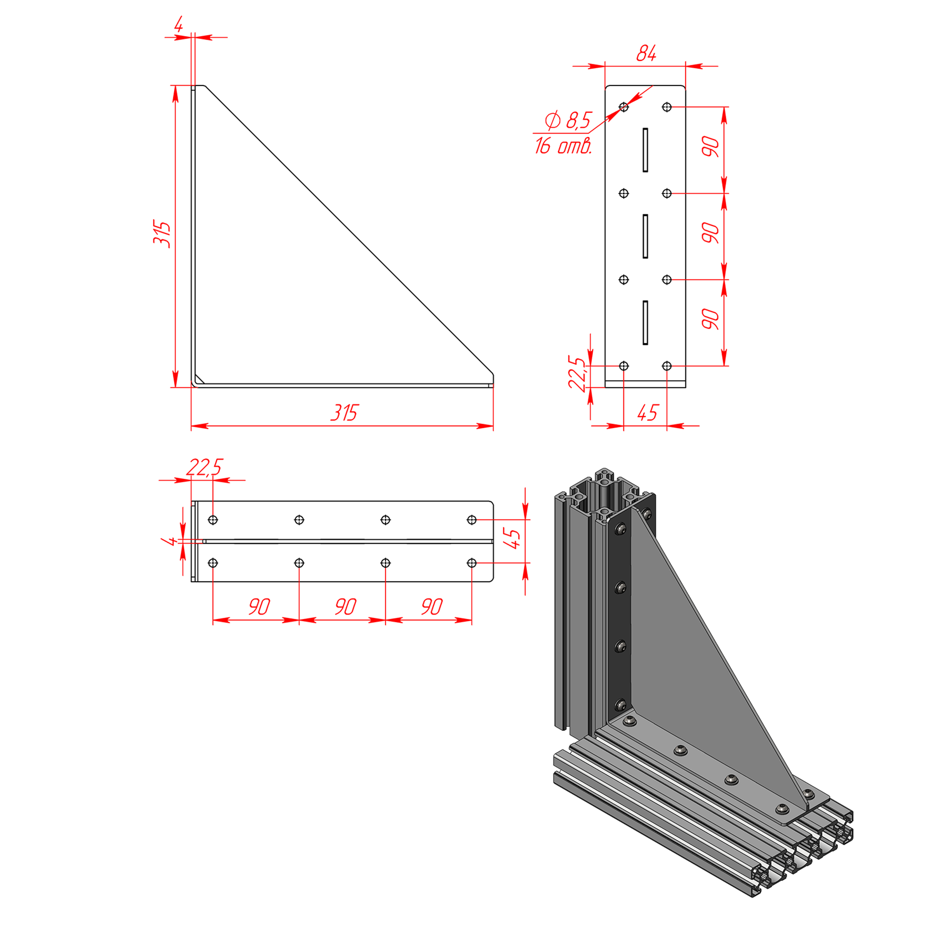 83.315.495s | Стальной угловой соединитель 315х495х84 мм