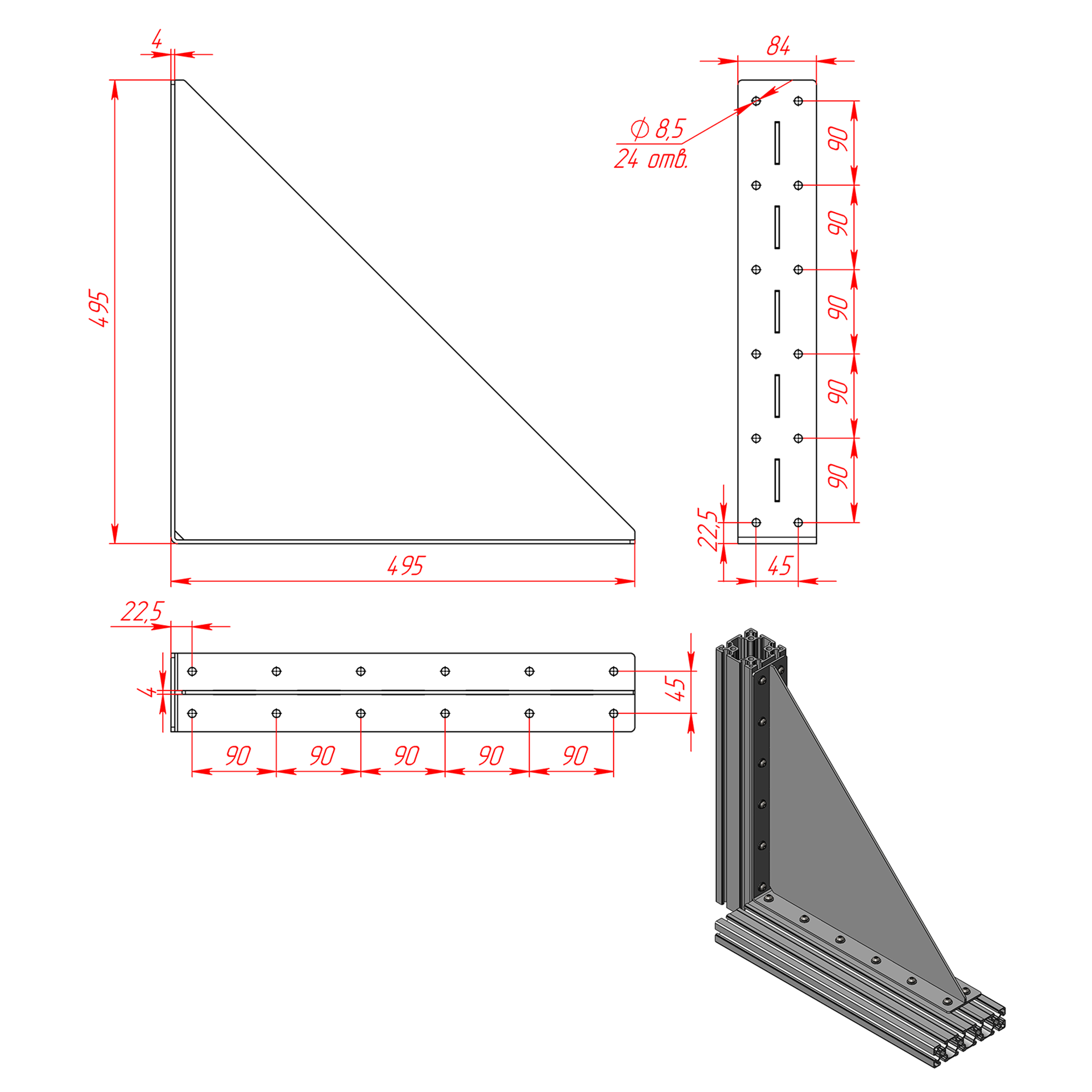 83.495.675s | Стальной угловой соединитель 495х675х84 мм