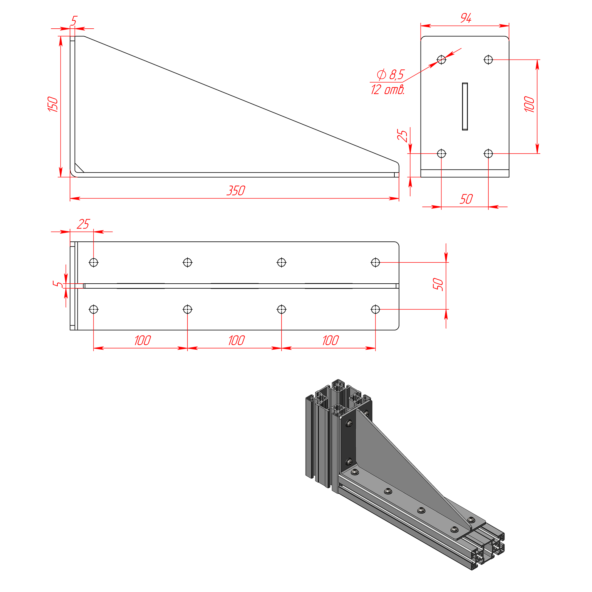 85.150.150s | Стальной угловой соединитель 150х150х94 мм