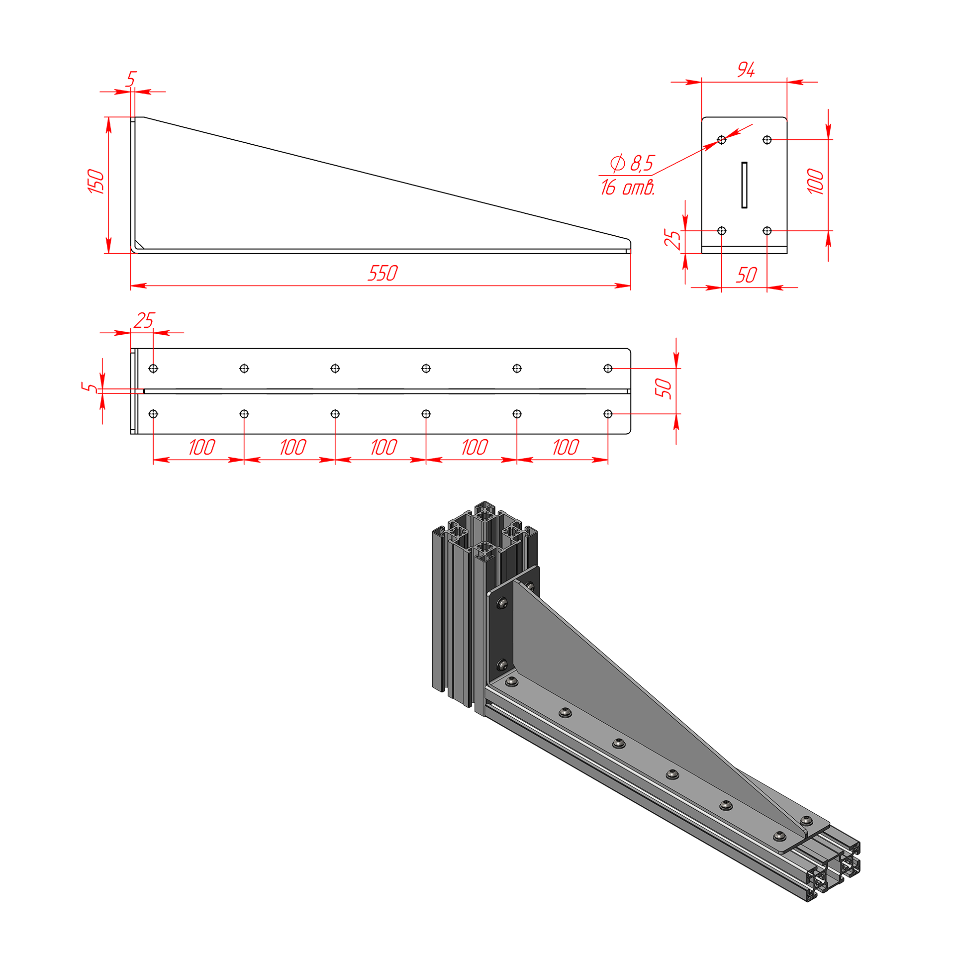 85.150.550s | Стальной угловой соединитель 150х550х94 мм