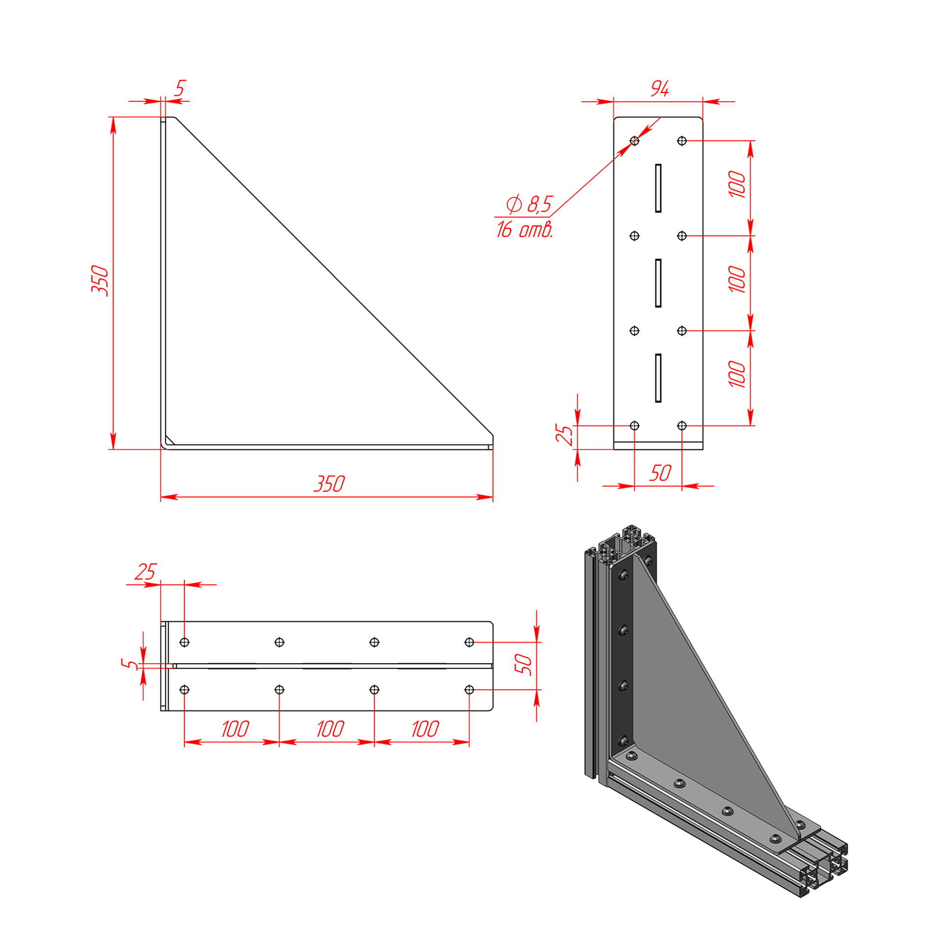 85.350.550s | Стальной угловой соединитель 350х550х94 мм
