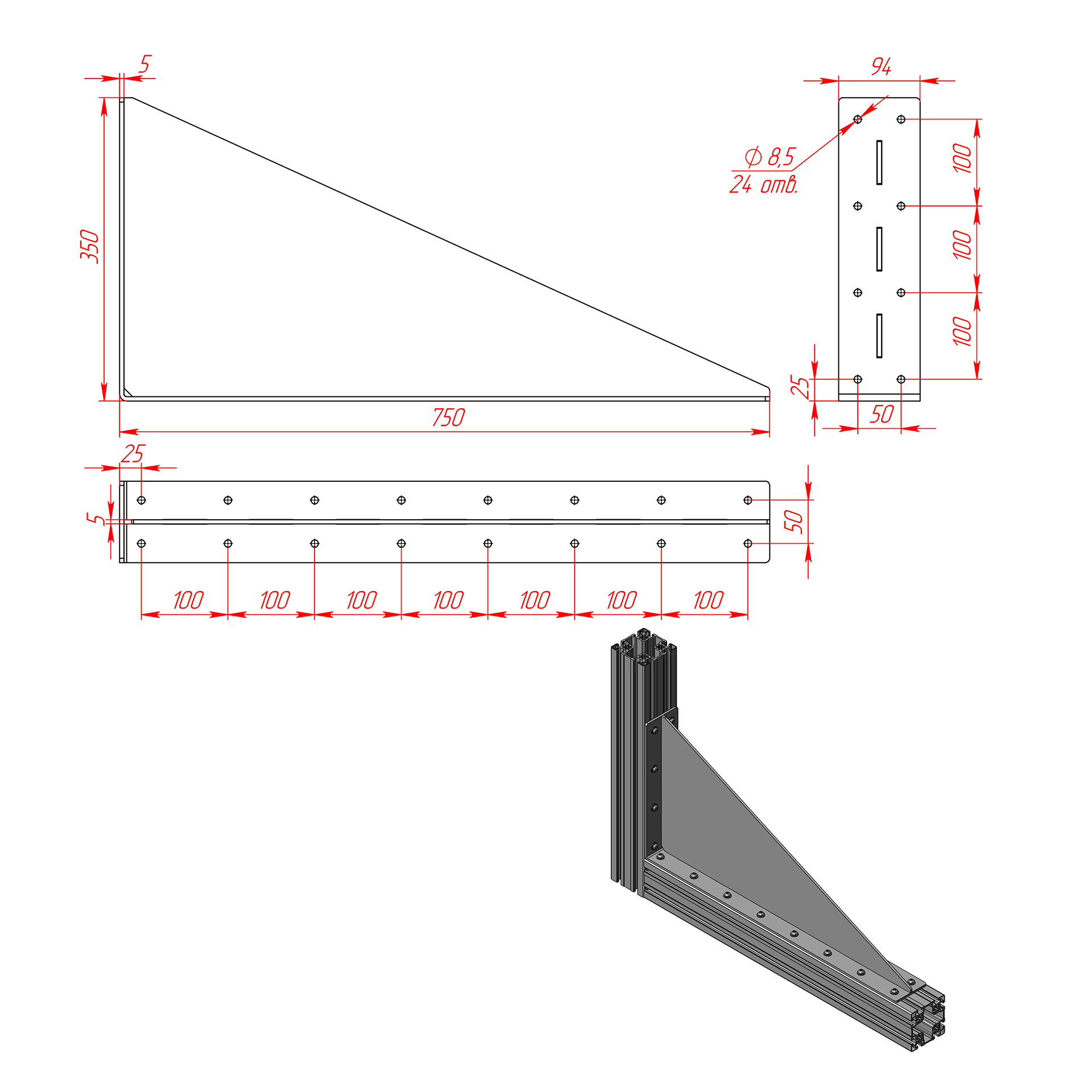 85.350.550s | Стальной угловой соединитель 350х550х94 мм