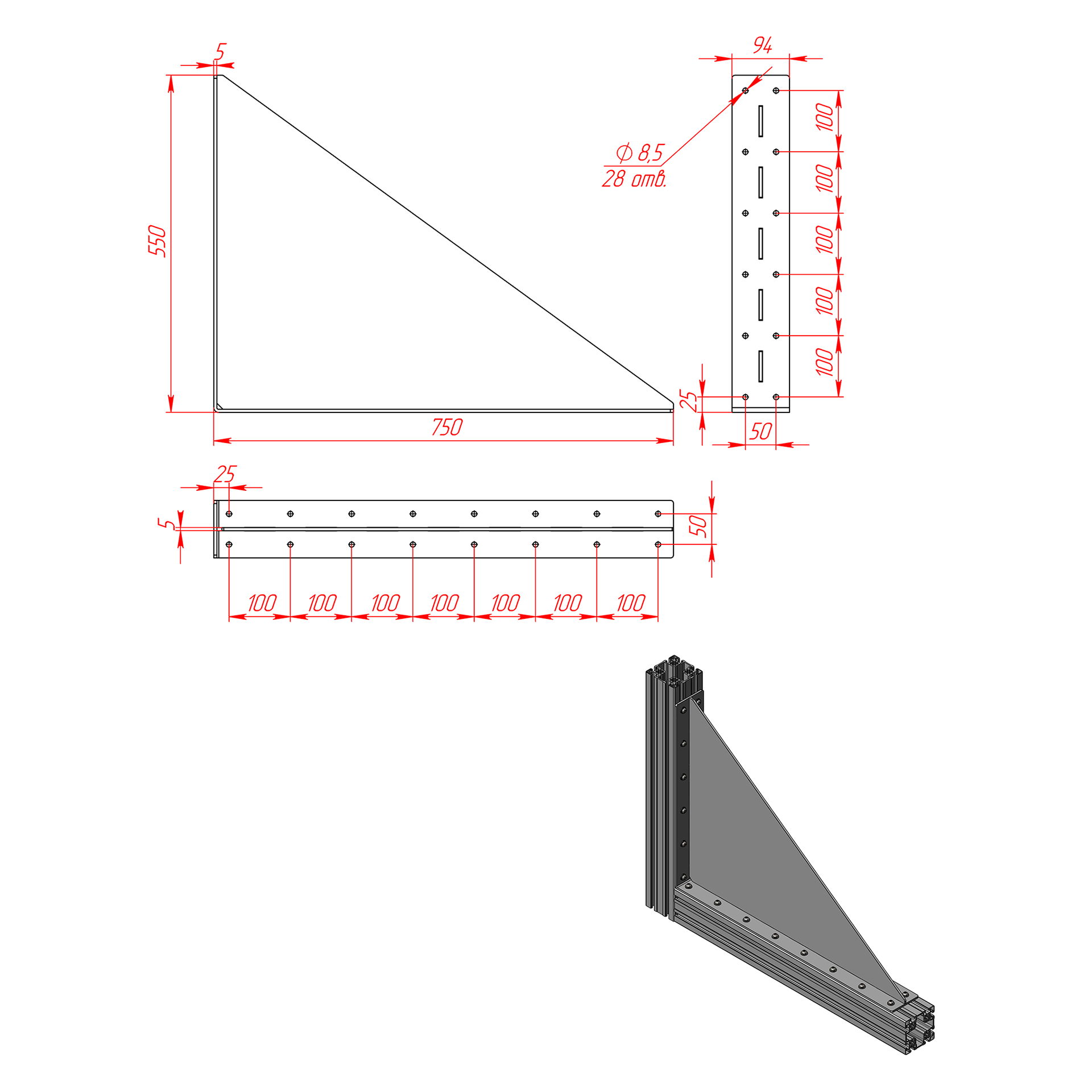 85.550.550s | Стальной угловой соединитель 550х550х94 мм