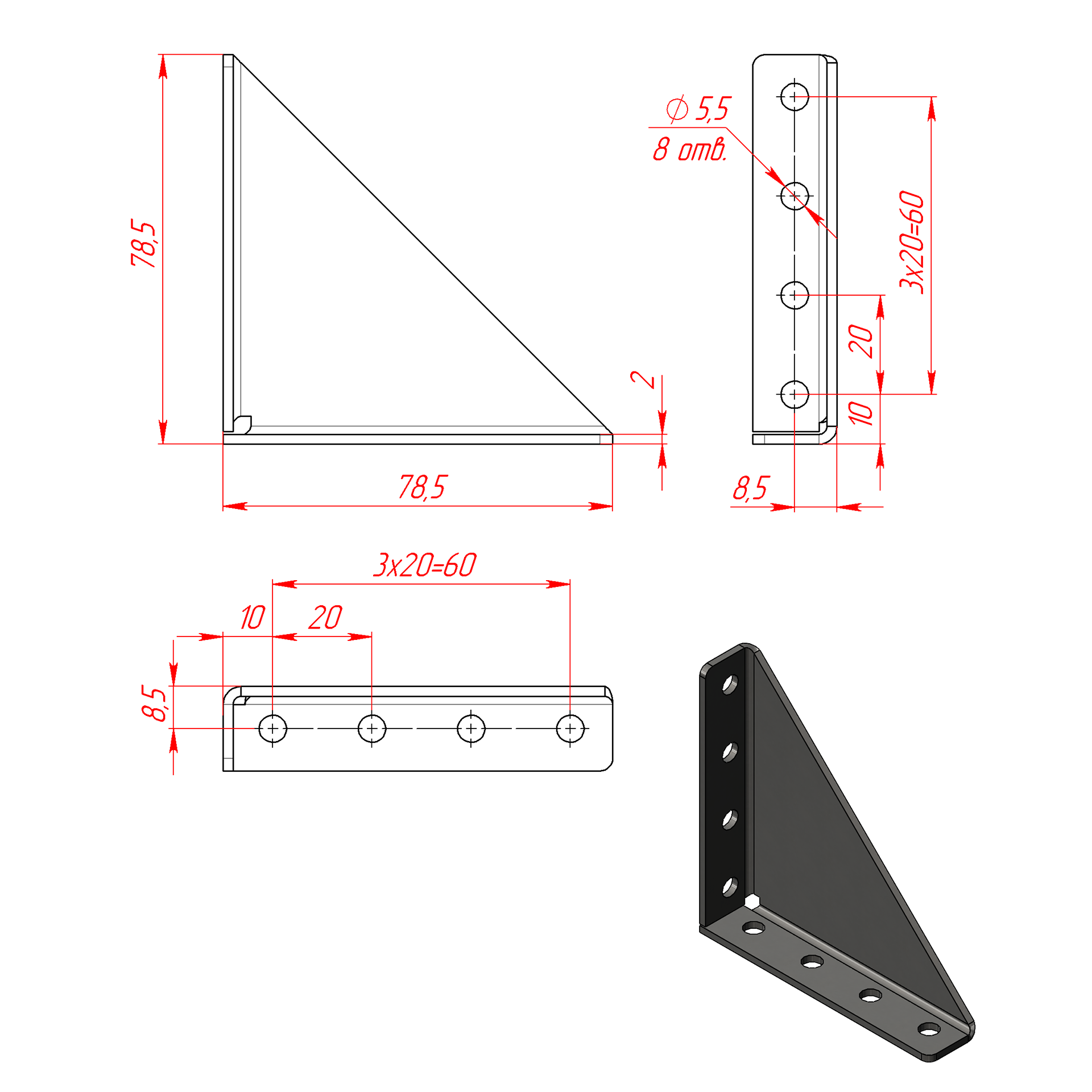 8005s | Стальной угловой соединитель 20х40 мм усиленный