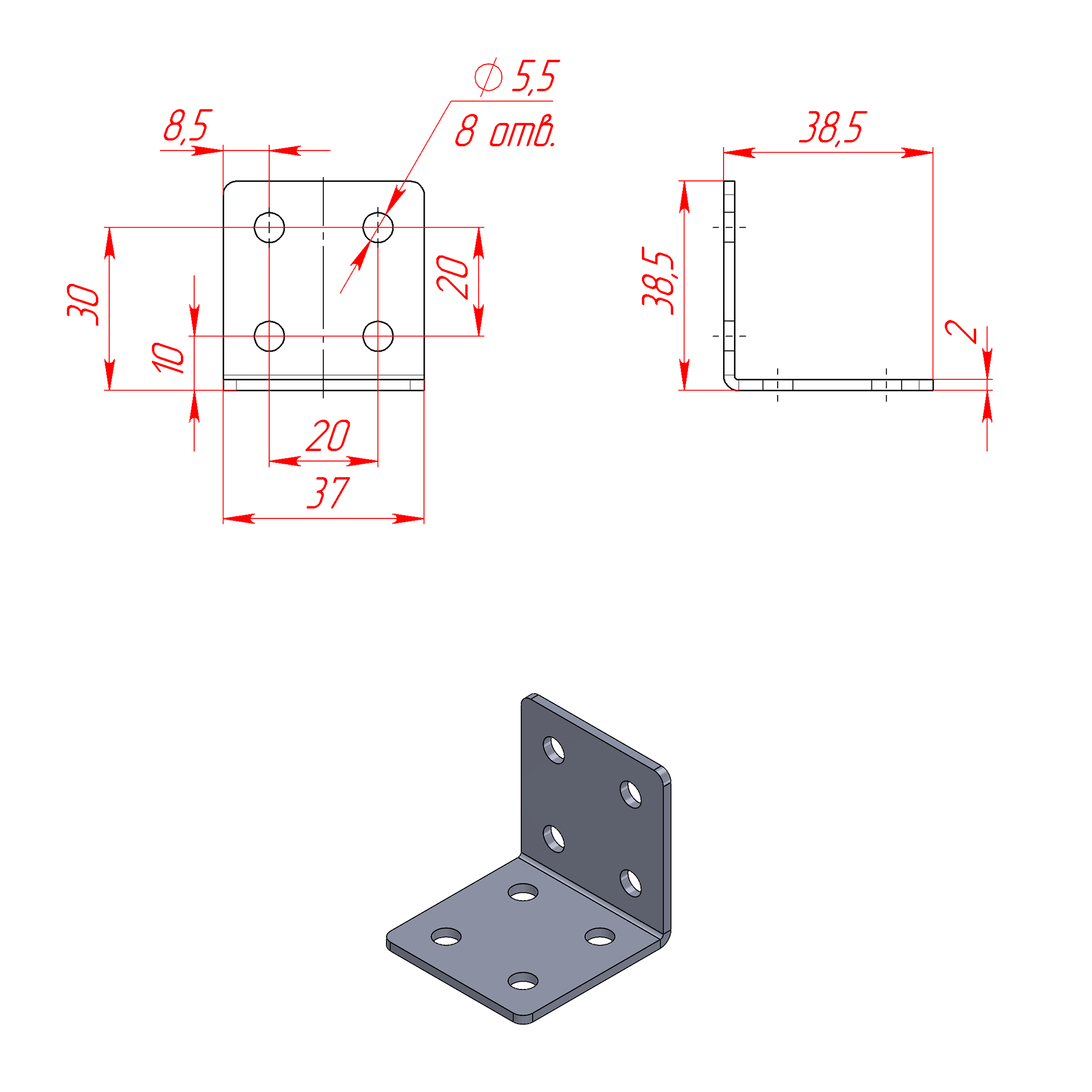 8004s | Стальной угловой соединитель 40х20 мм
