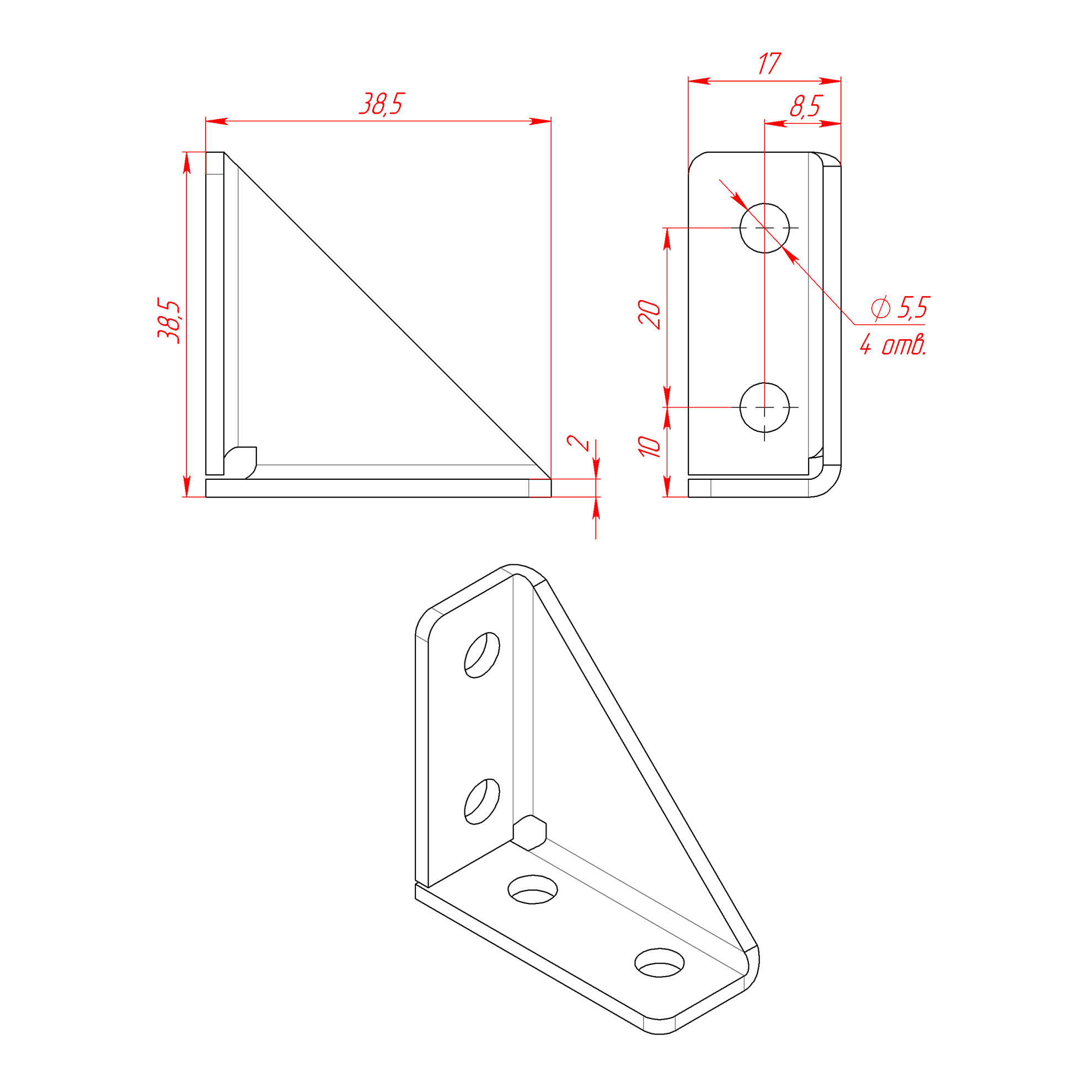 2107 | Стальной внутренний угловой соединитель Паз 6 к профилям серии 20