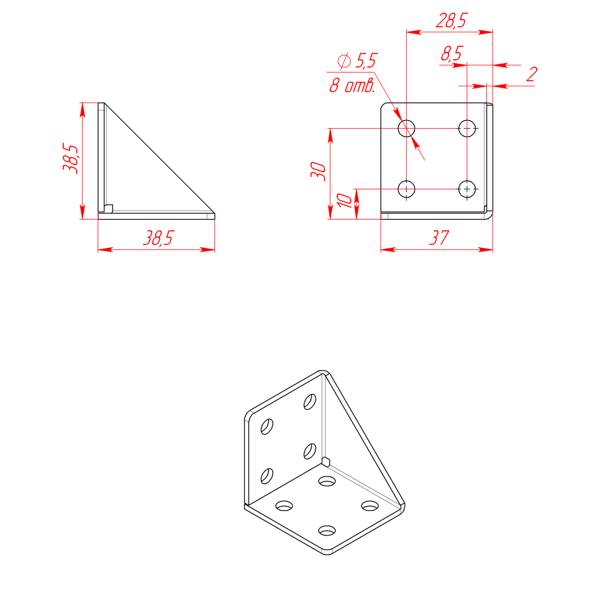 8005s | Стальной угловой соединитель 20х40 мм усиленный