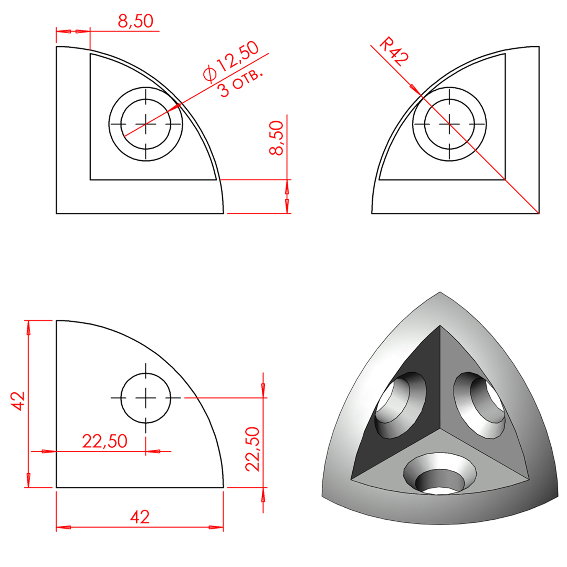Не забудьте купить комплект крепежа к трехстороннему соединителю серии 45 арт. 2015: Винт 12x25 DIN7991 с доработкой (наружный диаметр винта стачивается на токарном станке) - 3 шт.|