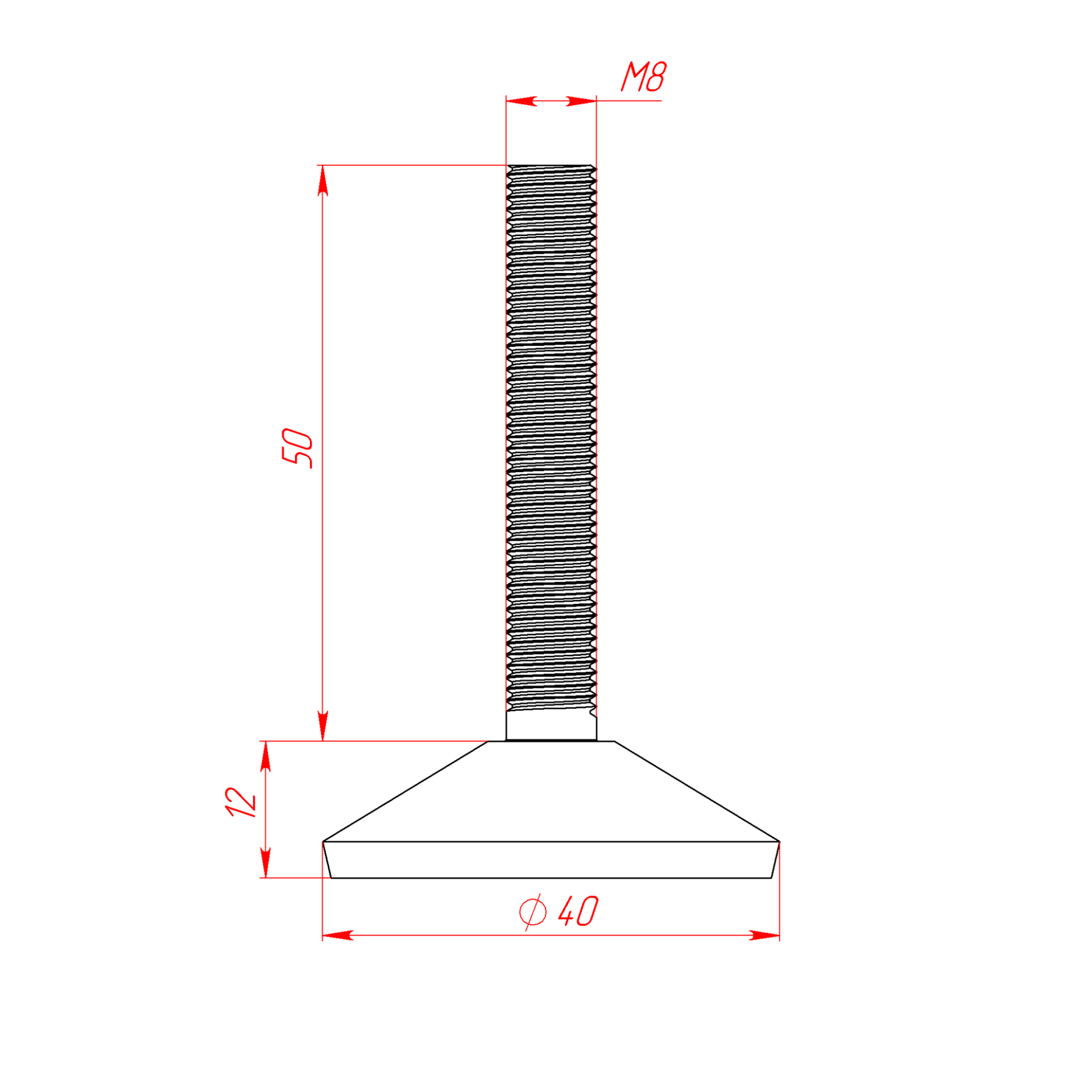 D30M8H40-SH | Опора резьбовая шарнирная D30мм, шпилька М8х40 мм