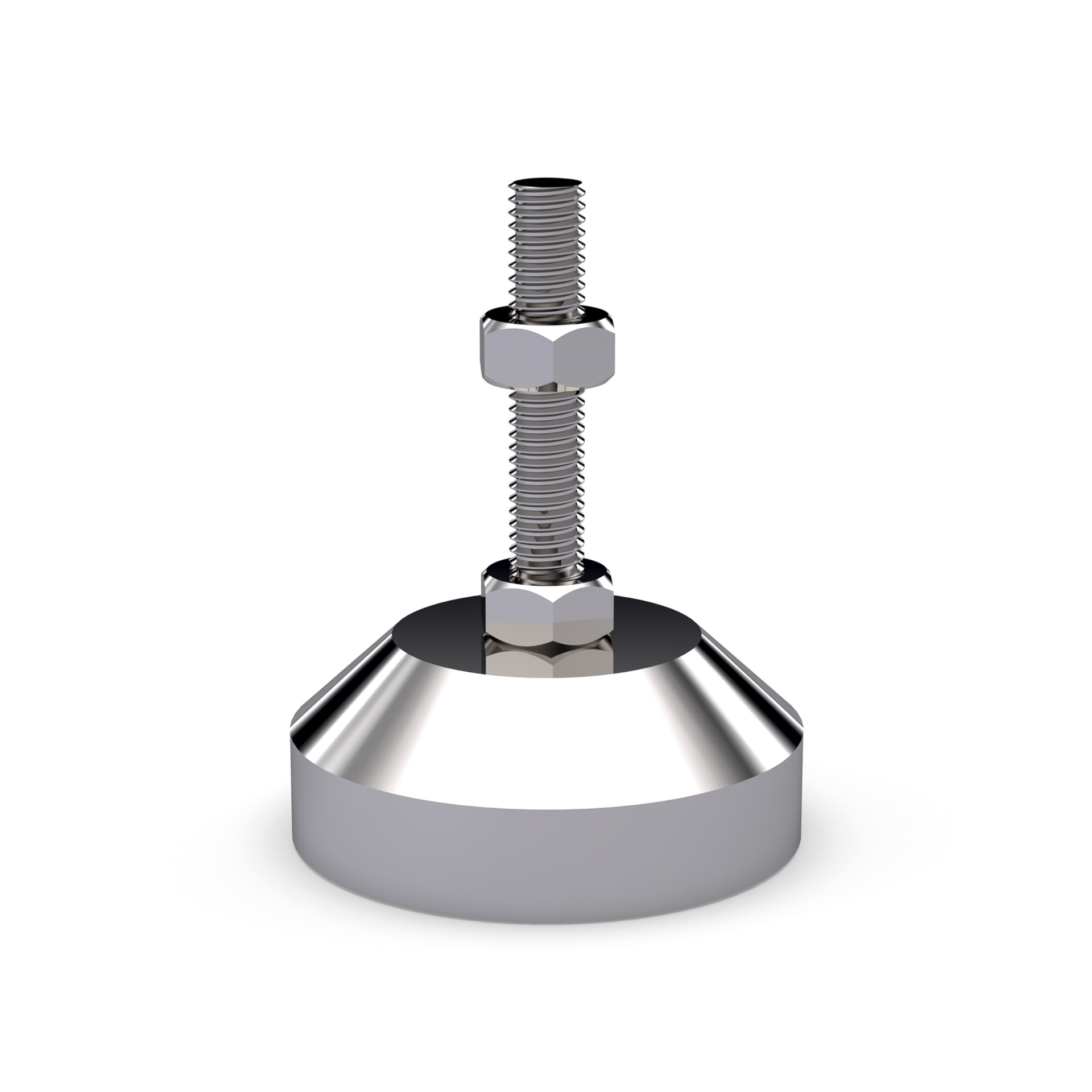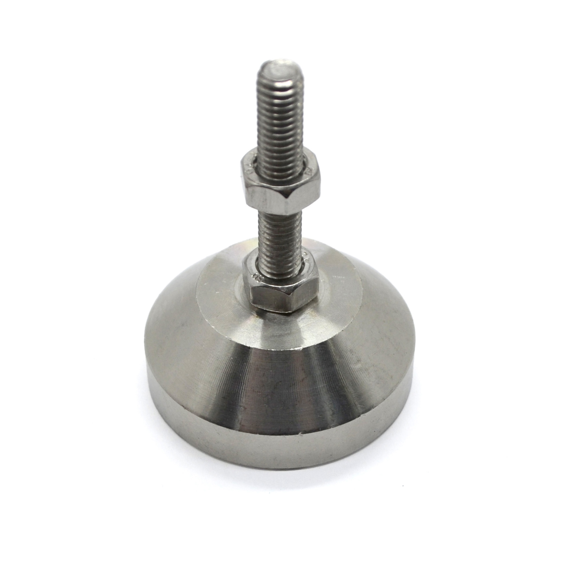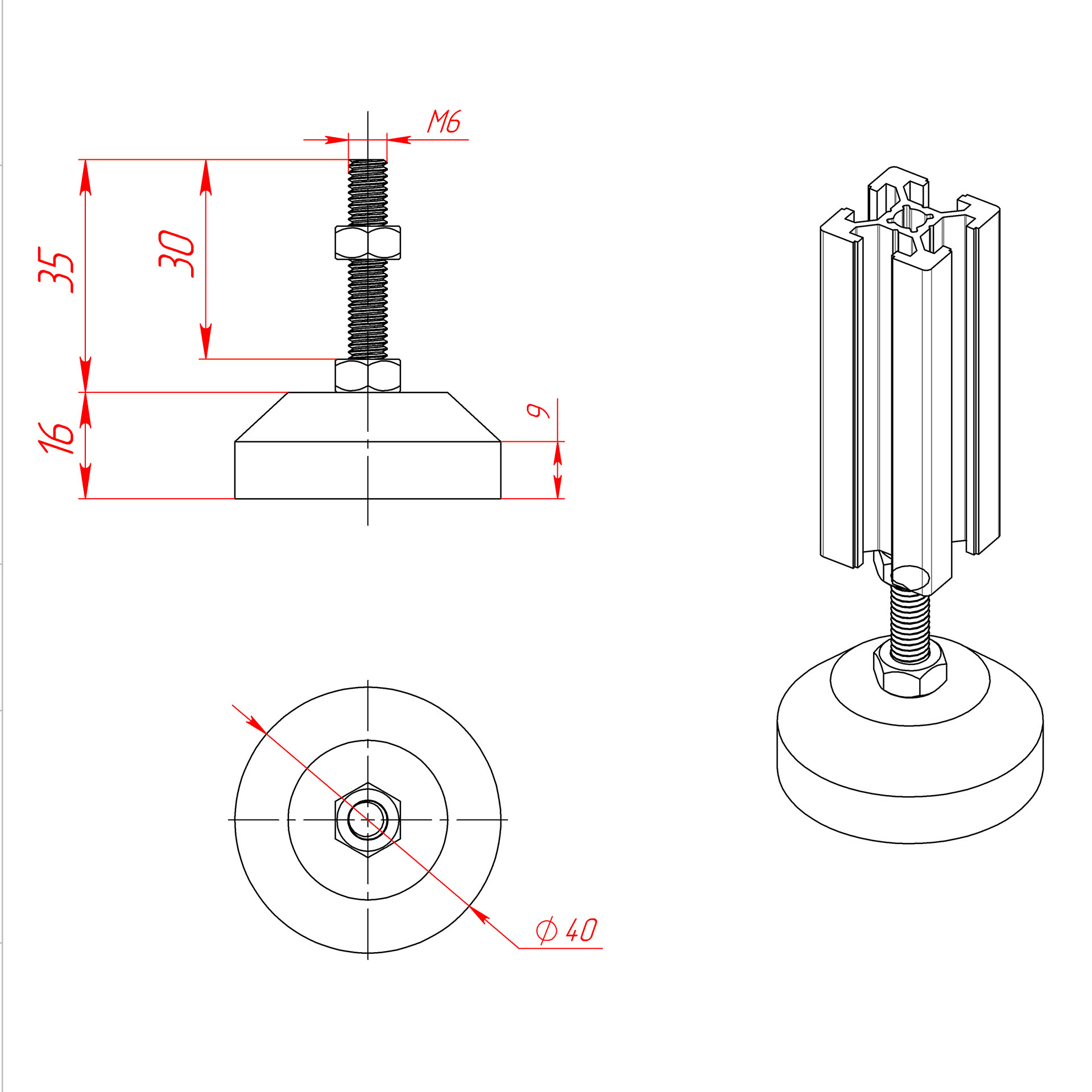 Регулируемая нержавеющая опора с основанием 40 мм и шпилькой М6х30 мм. Шпилька жестко зафиксирована в основании, без возможности наклона.