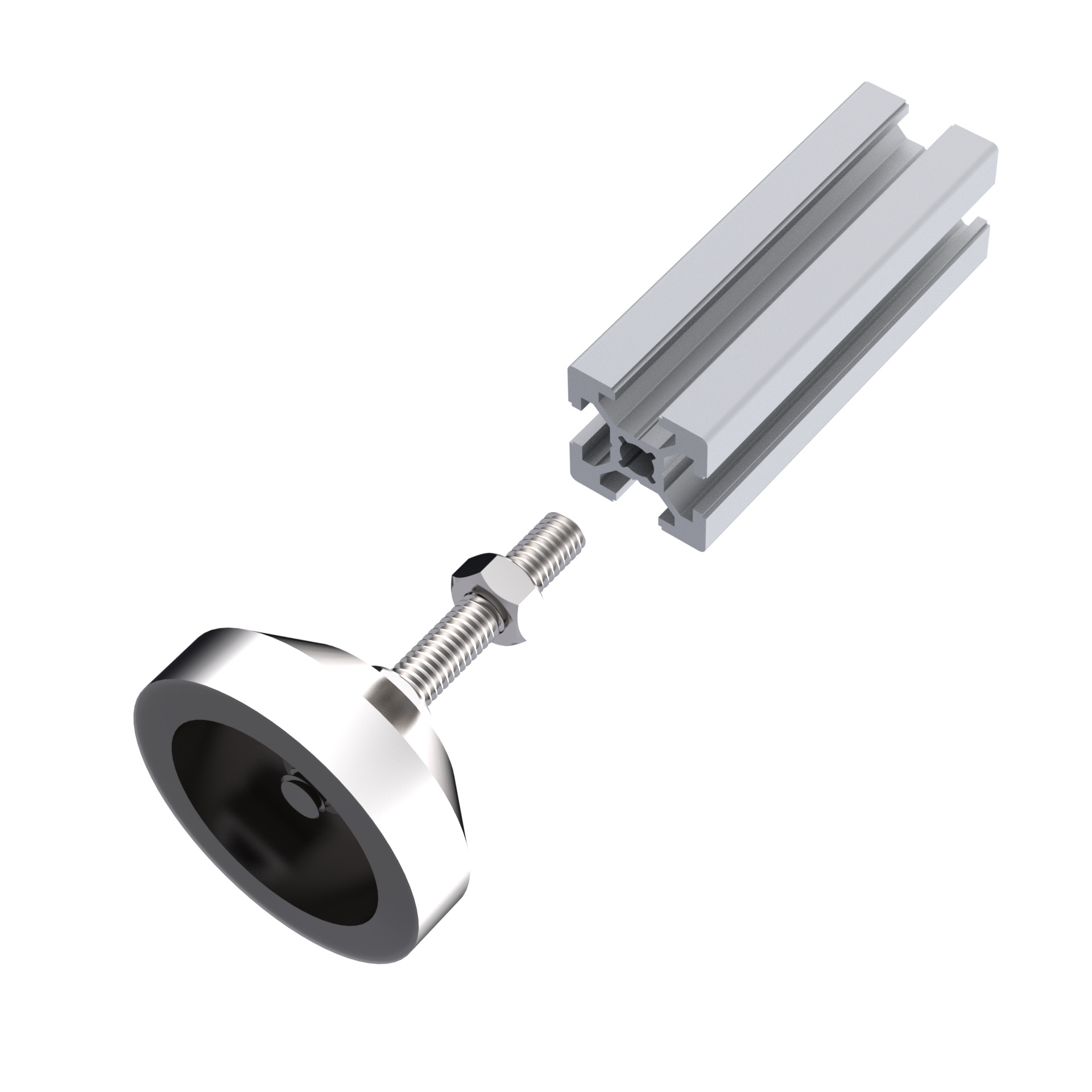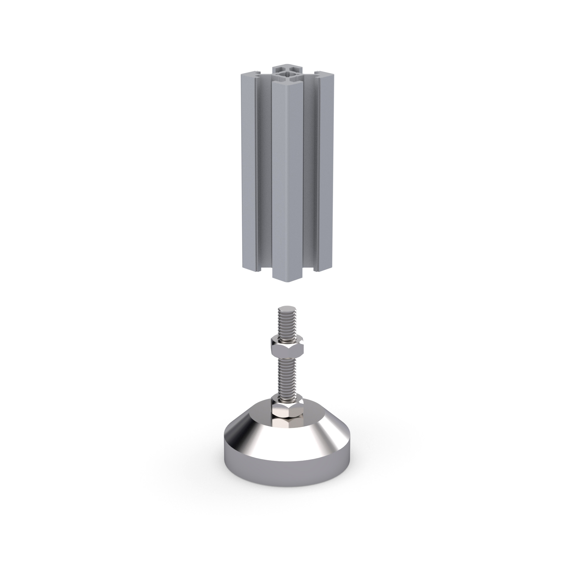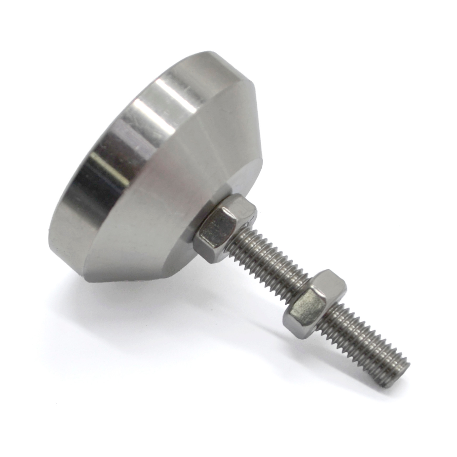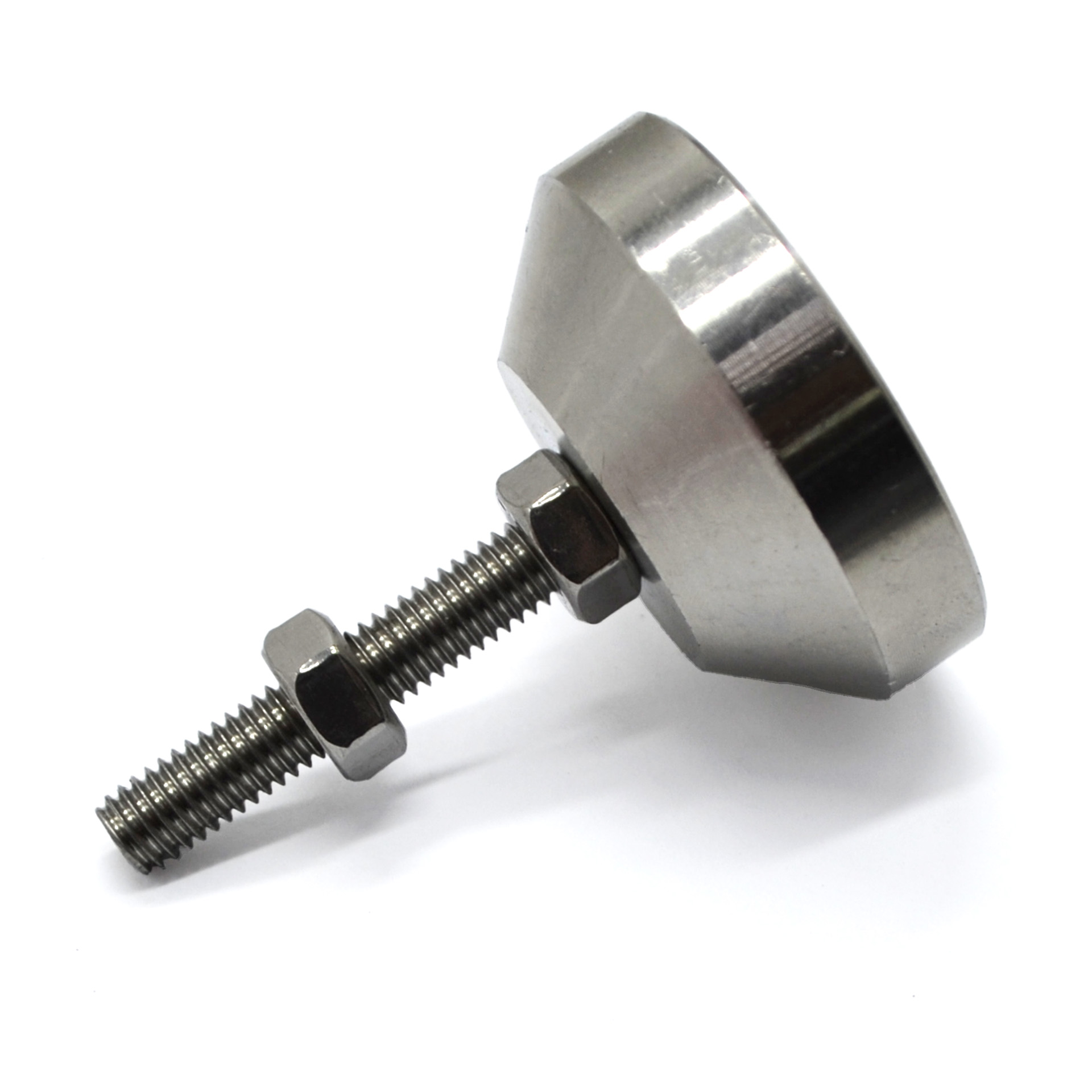 Регулируемая нержавеющая опора с основанием 40 мм и шпилькой М6х30 мм. Шпилька жестко зафиксирована в основании, без возможности наклона.