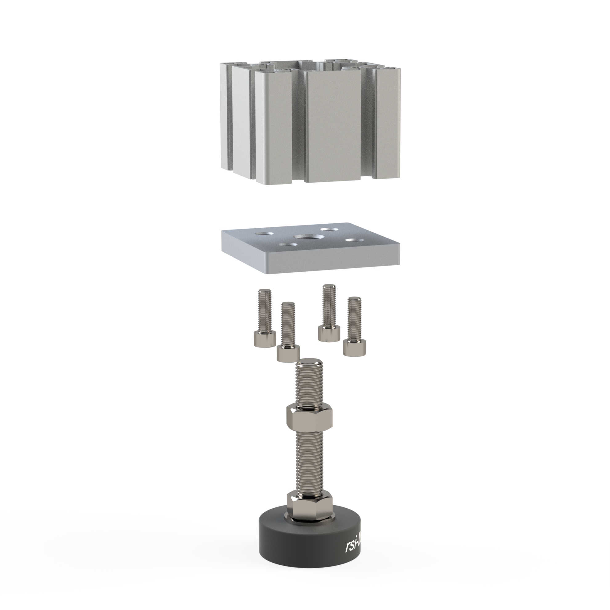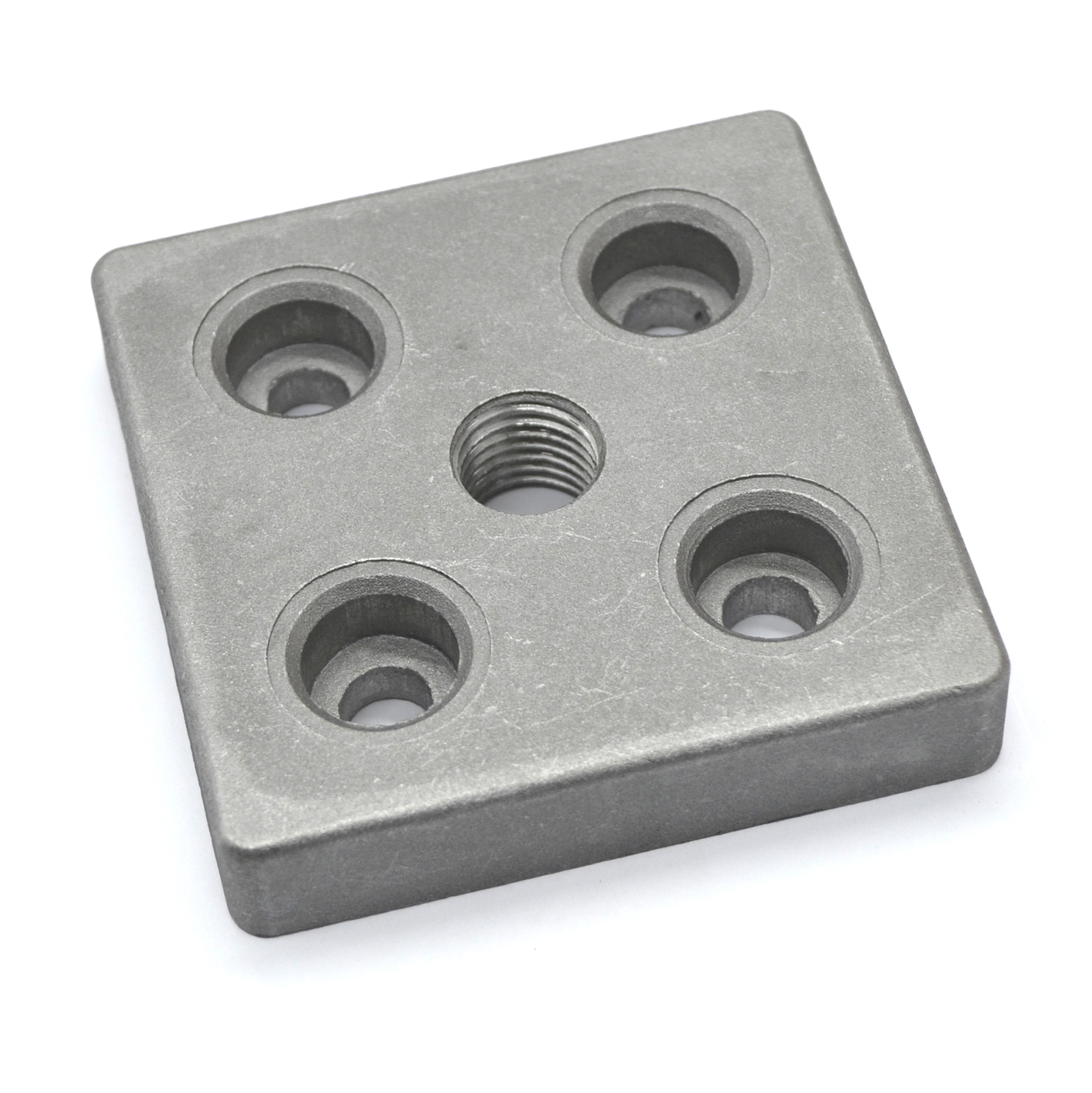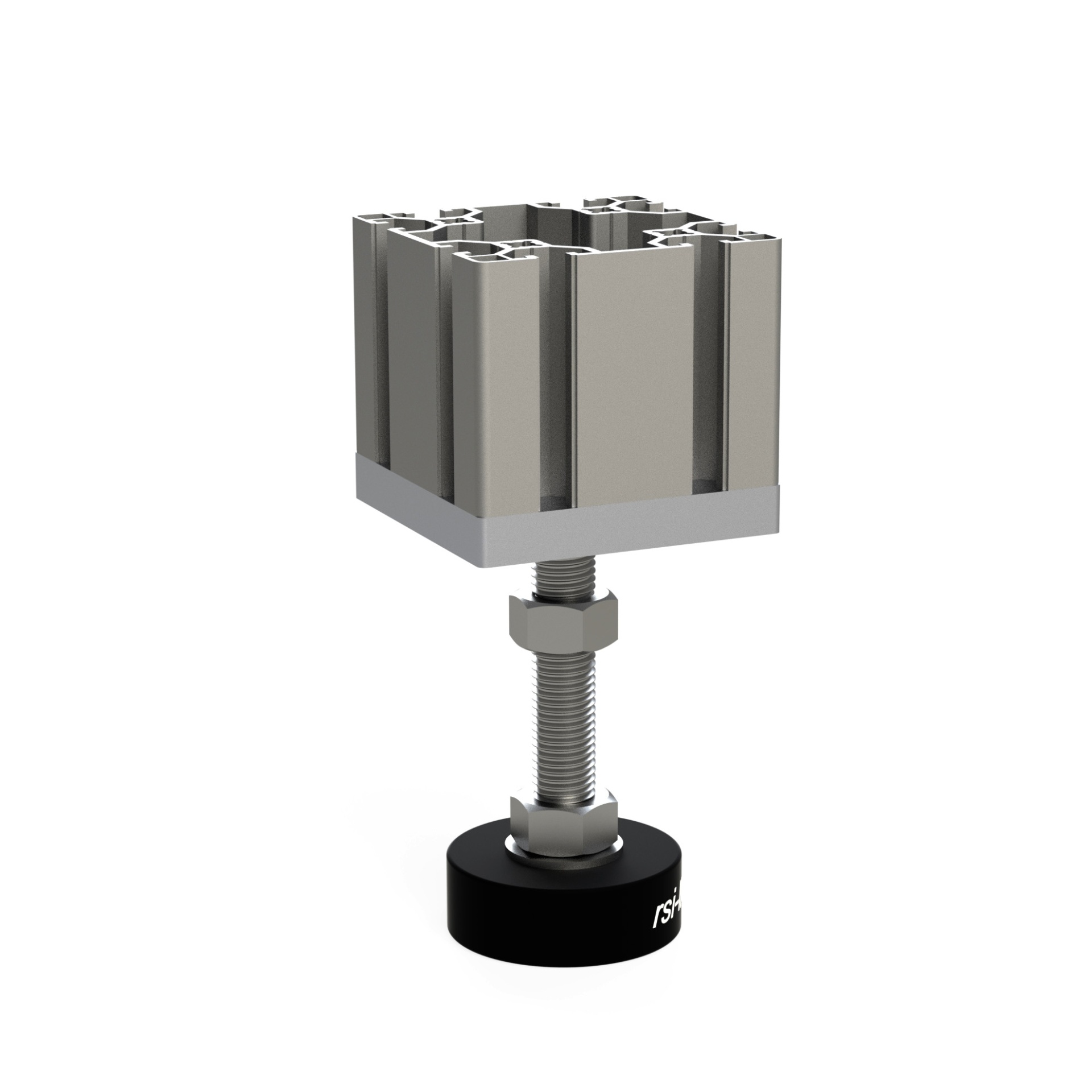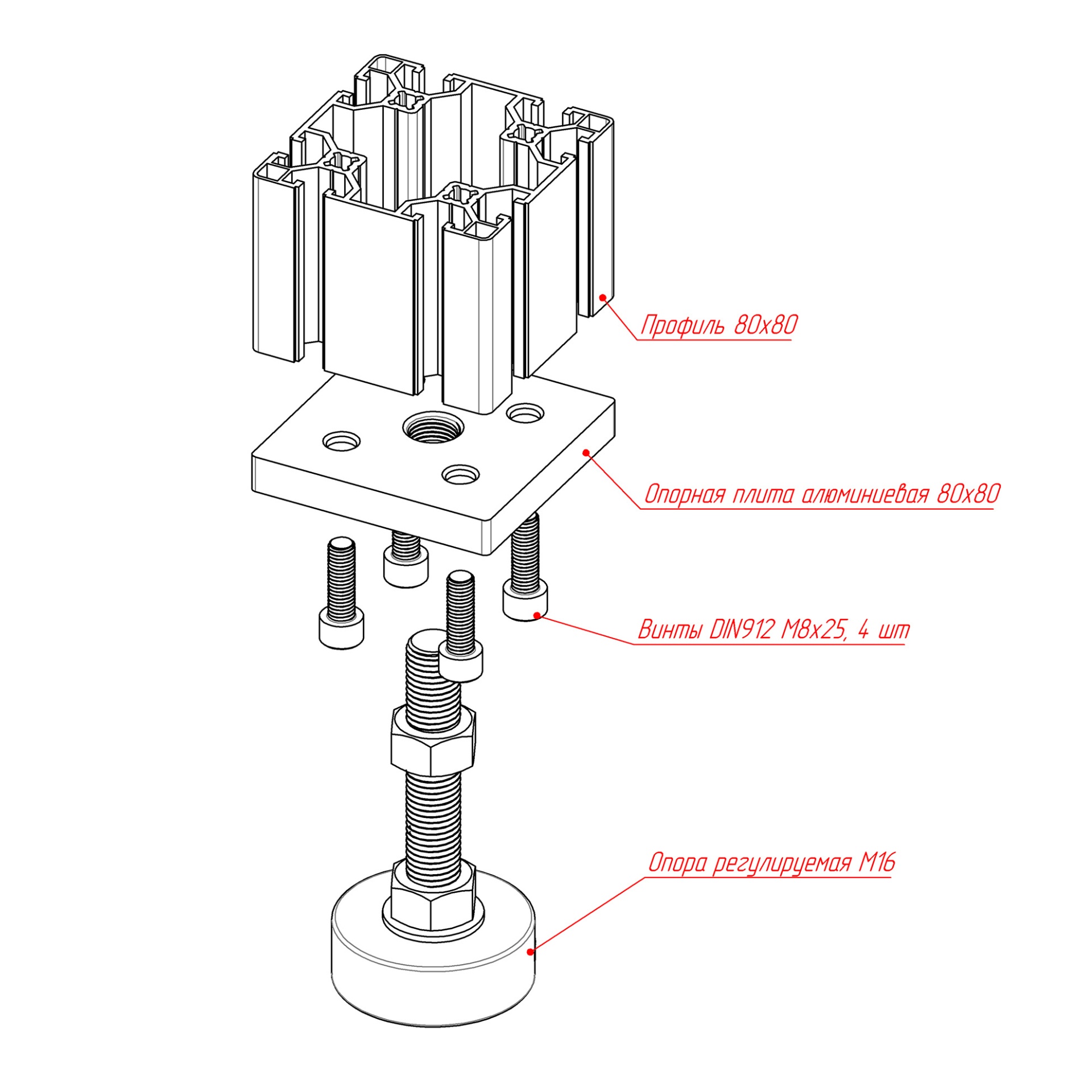 Эта прочная и легкая опорная плита предназначена для надежной фиксации регулируемых ножек с резьбой M16 в конструкционных алюминиевых профилях размером 80x80 мм.