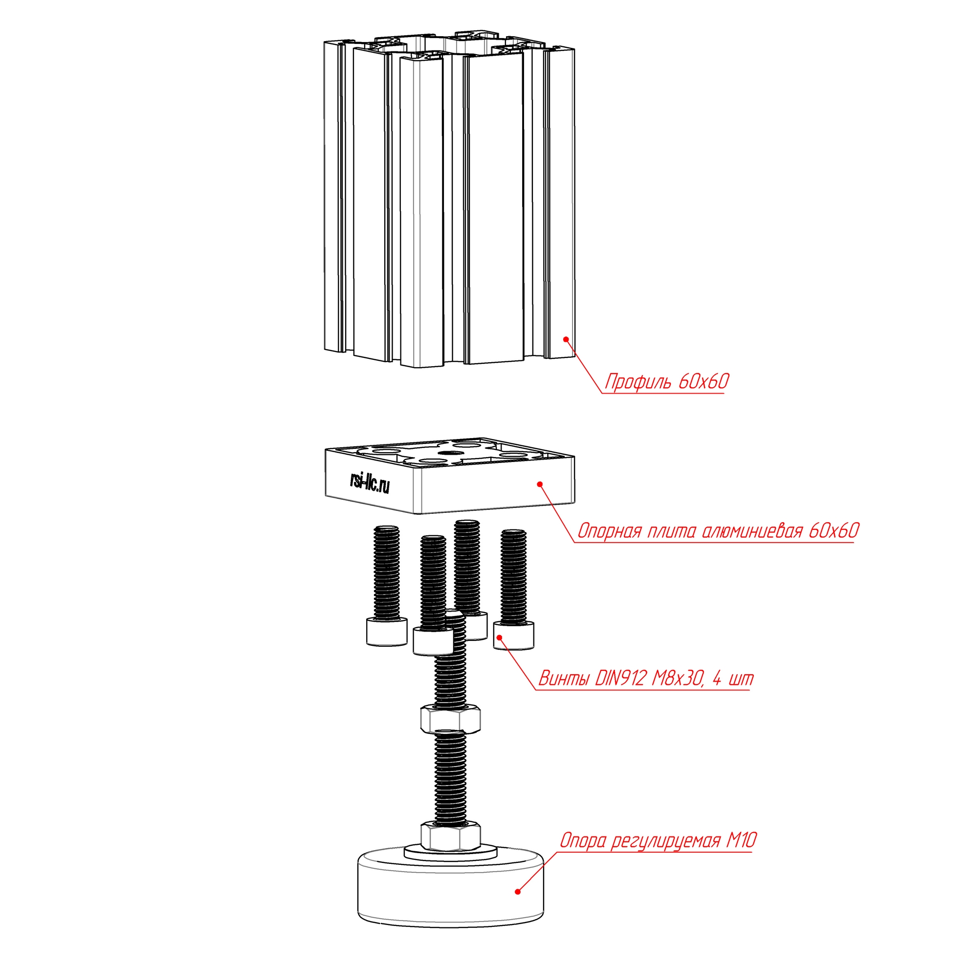 Надежное решение для установки регулируемых ножек с резьбой M10. Эта легкая и прочная алюминиевая плита обеспечивает стабильность и долговечность вашей конструкции.