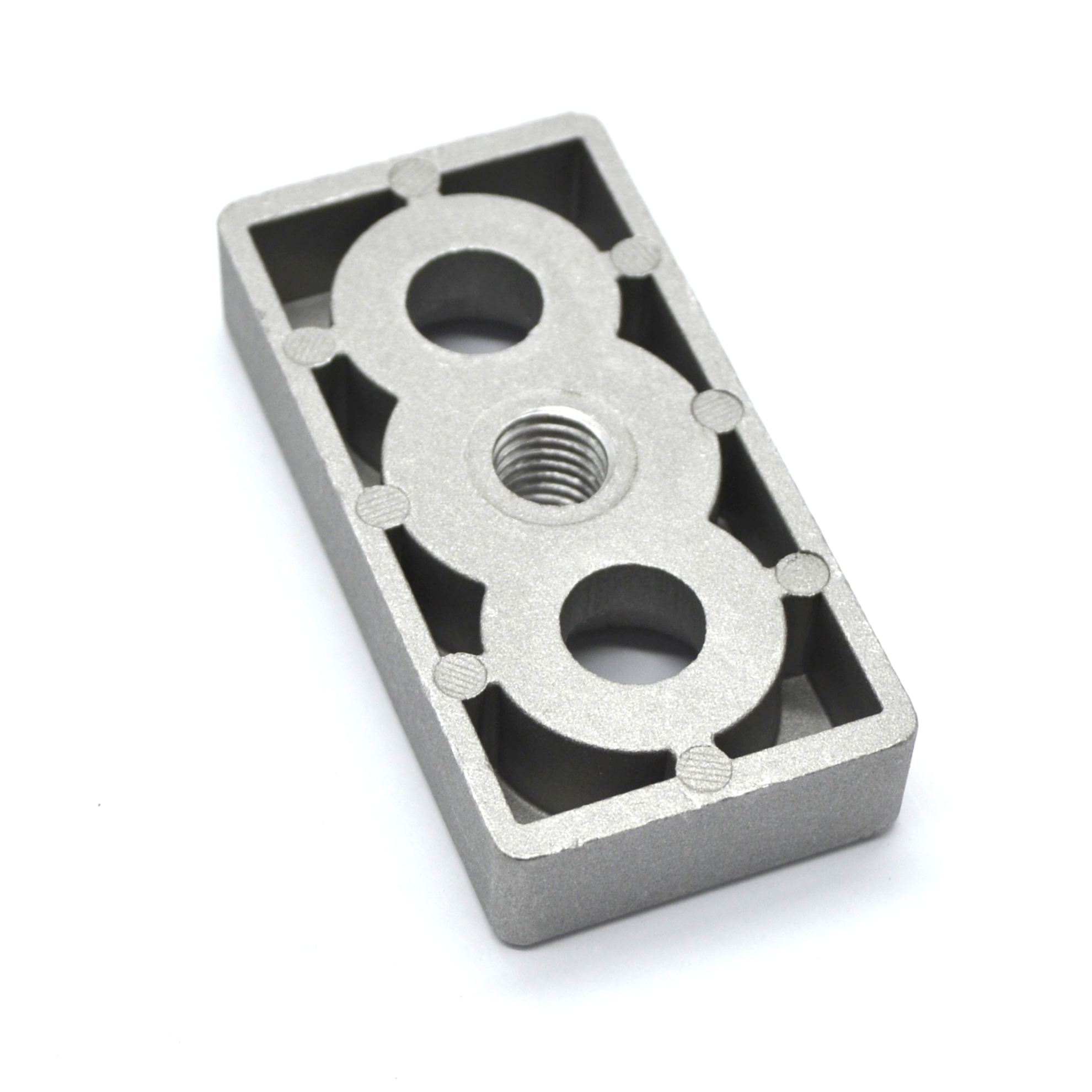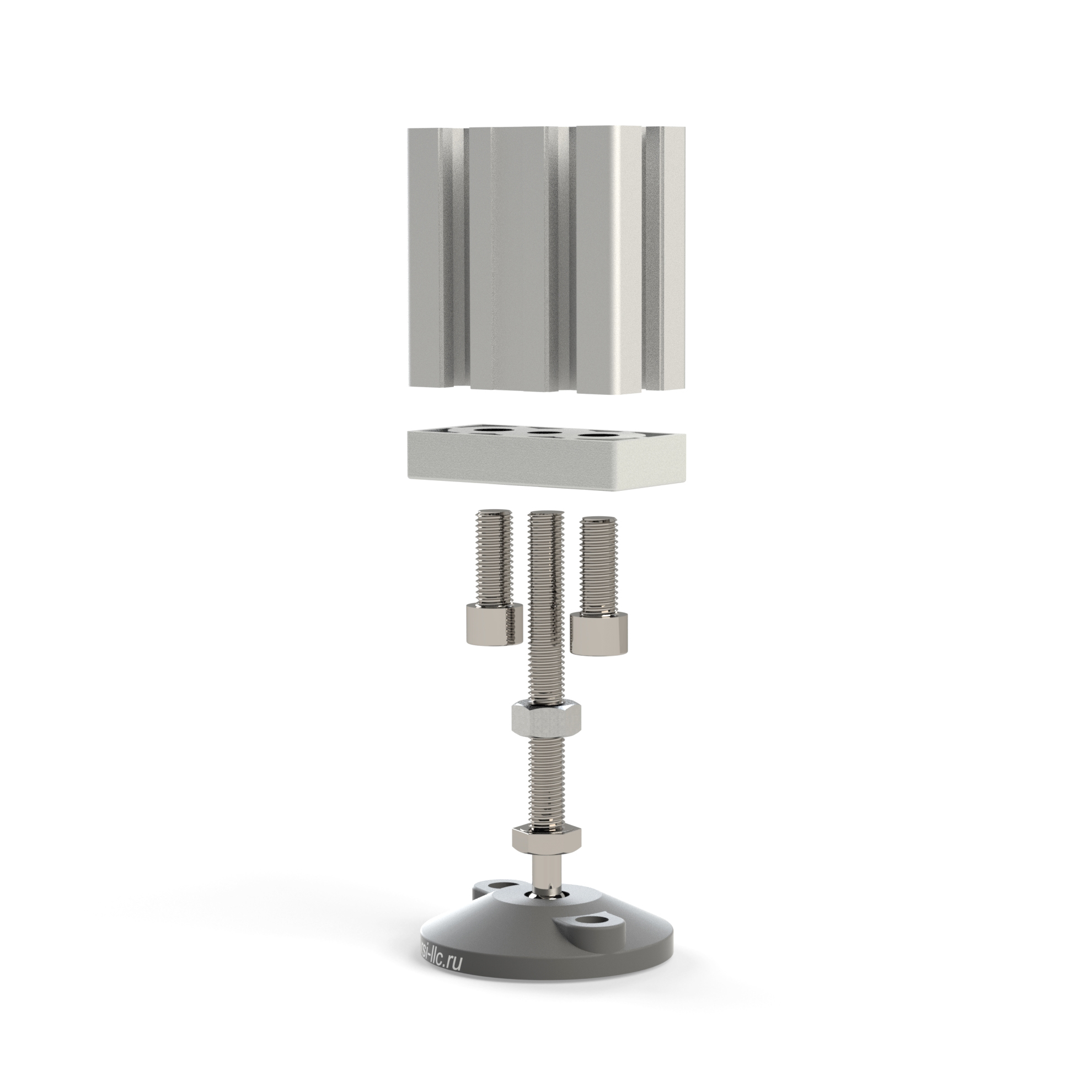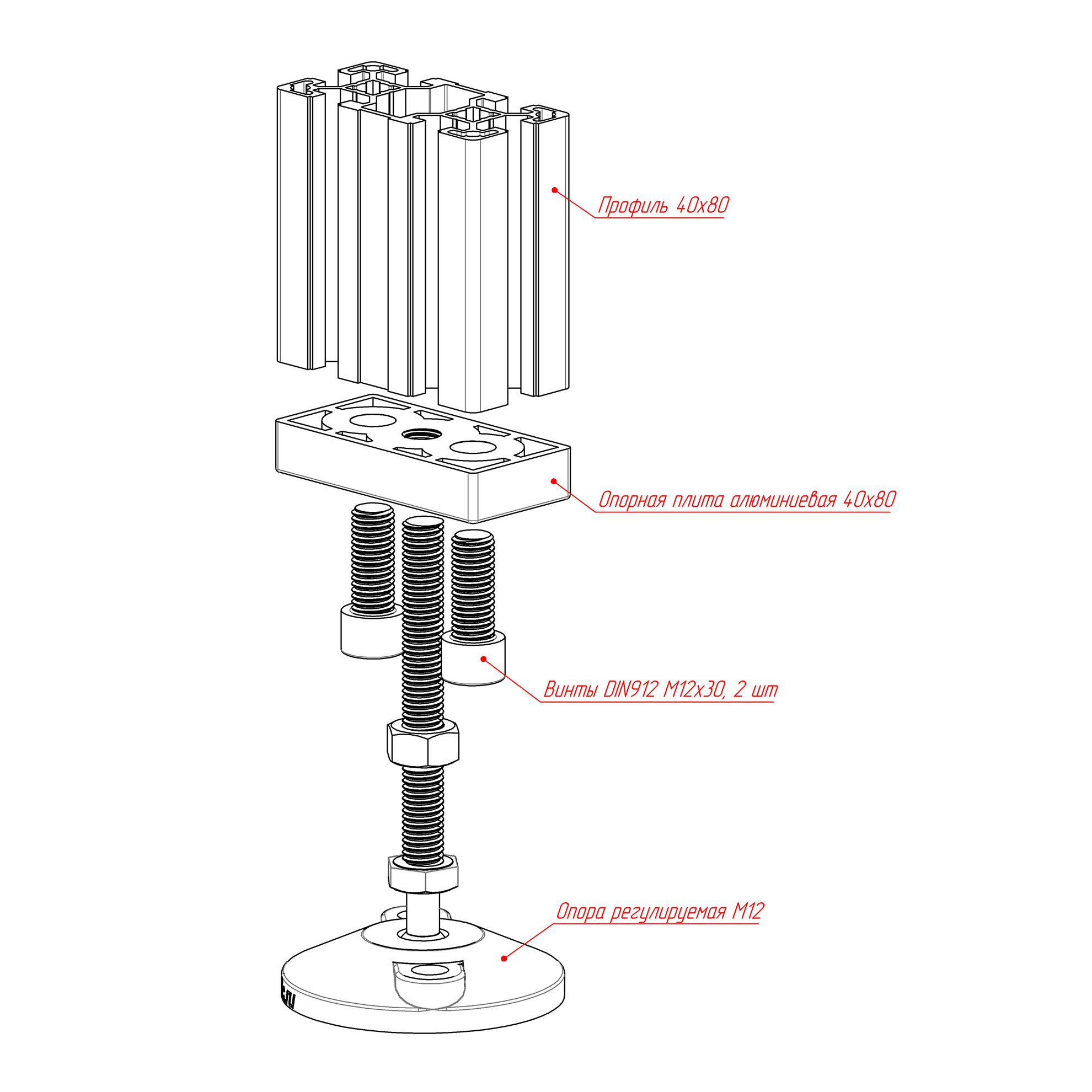 Прочная и легкая опорная плита из алюминия предназначена для надежного крепления профилей размером 40х80 мм с пазом 10 мм. Благодаря резьбе M12 и возможности установки регулируемой ножки, она обеспечивает стабильность и точность в сборке различных конструкций.