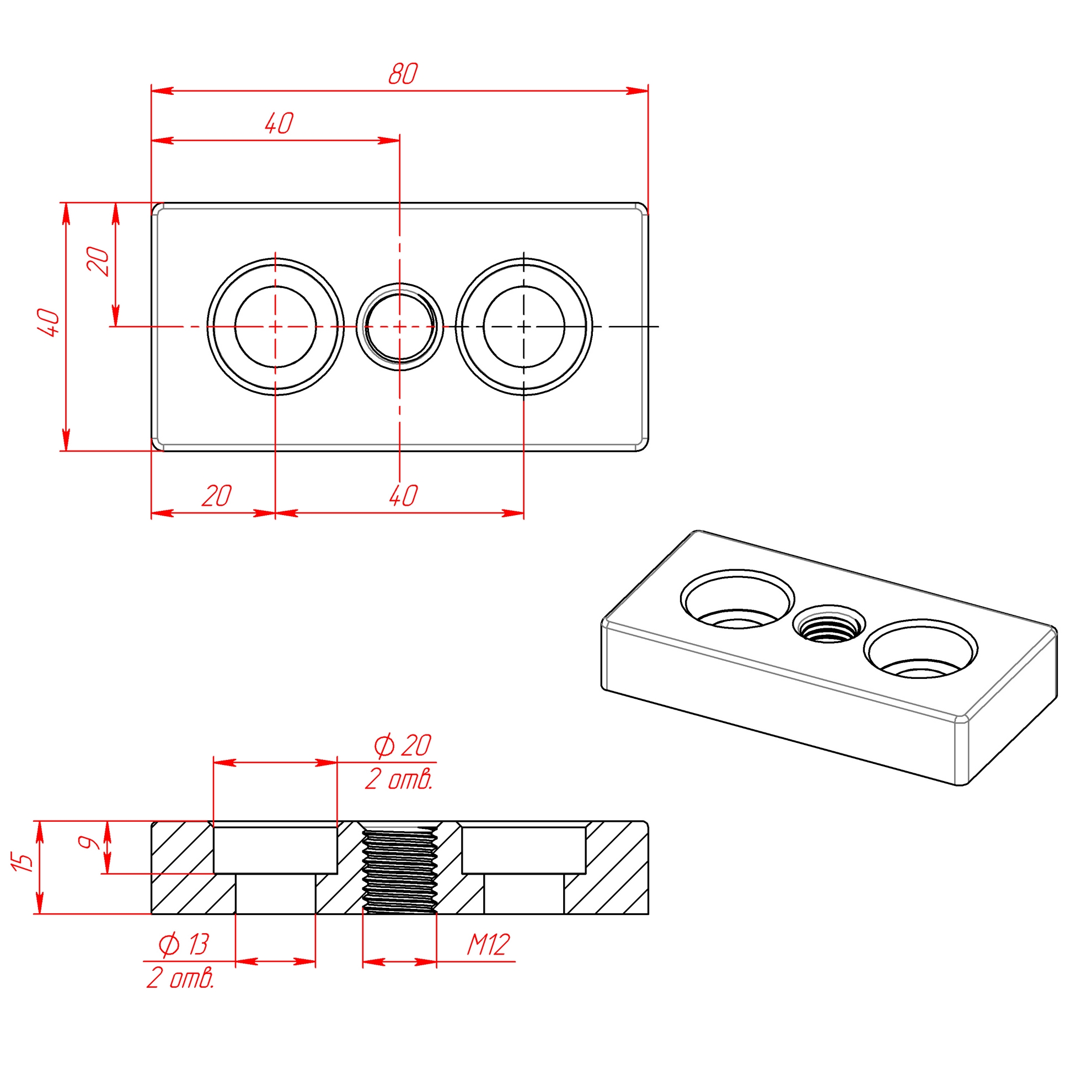 7002-S10-STEEL-М12 | Опорная плита стальная M12-40х80 паз 10 мм