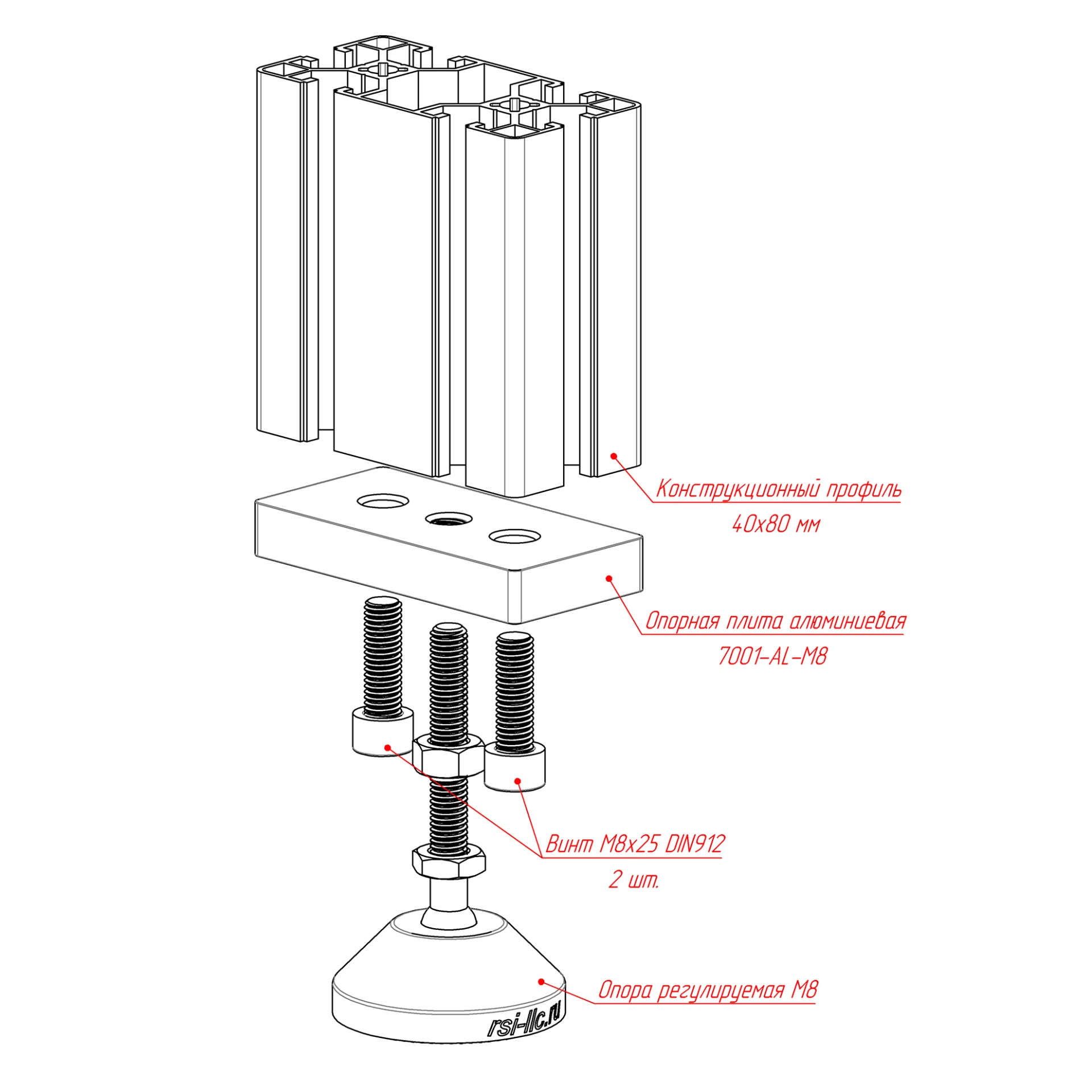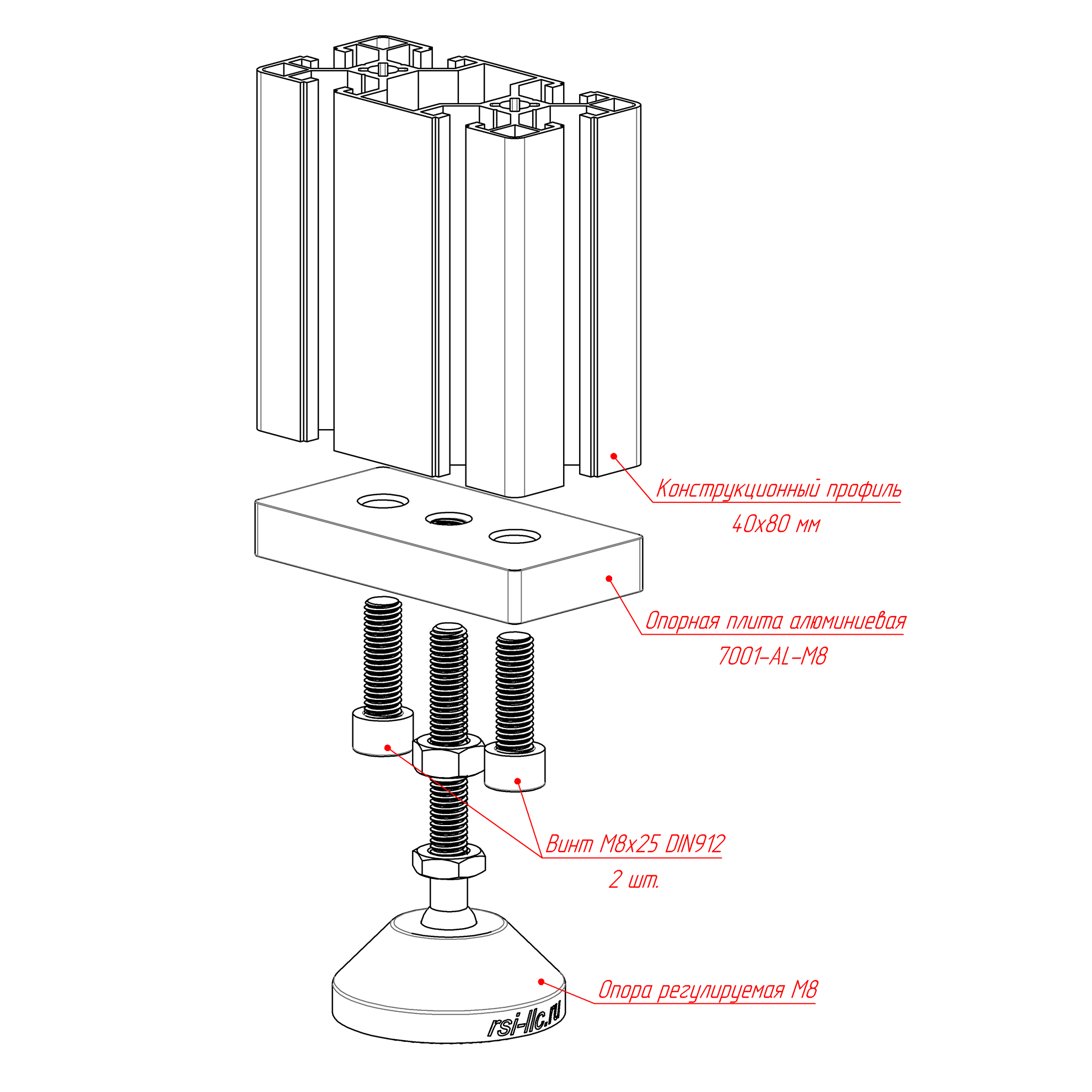 Алюминиевая опорная плита модели 7002-AL-Slot8-M8 предназначена для установки регулируемых ножек с резьбой M8. Эта прочная и легкая опора идеально подходит для конструкционных алюминиевых профилей размером 40х80 мм с пазом 8 мм, обеспечивая надежную поддержку и стабильность вашей конструкции.