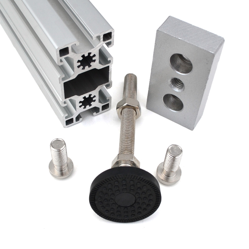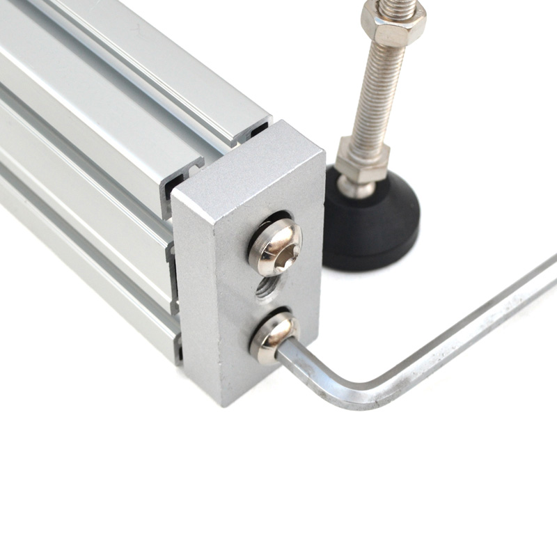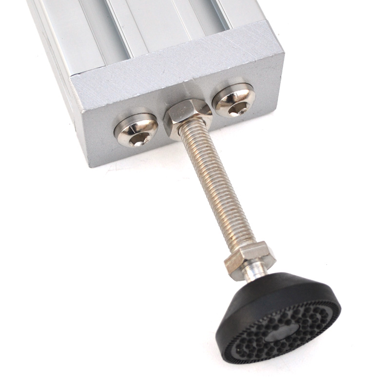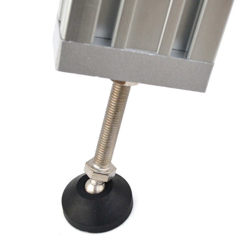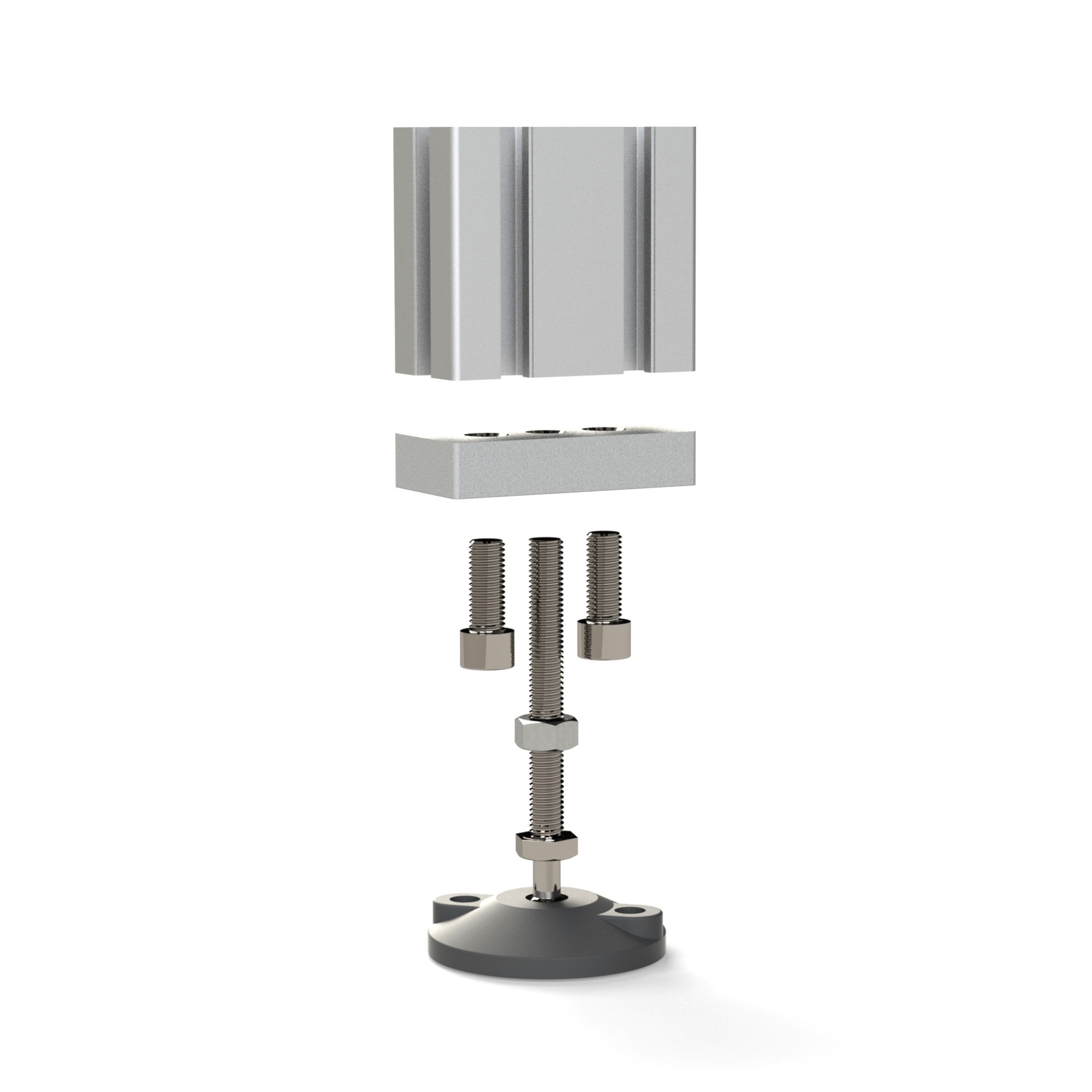 Элегантное и прочное решение для крепления ножек с резьбой M12 для установки и стабилизации конструкций из алюминиевых профилей 45х90 мм.