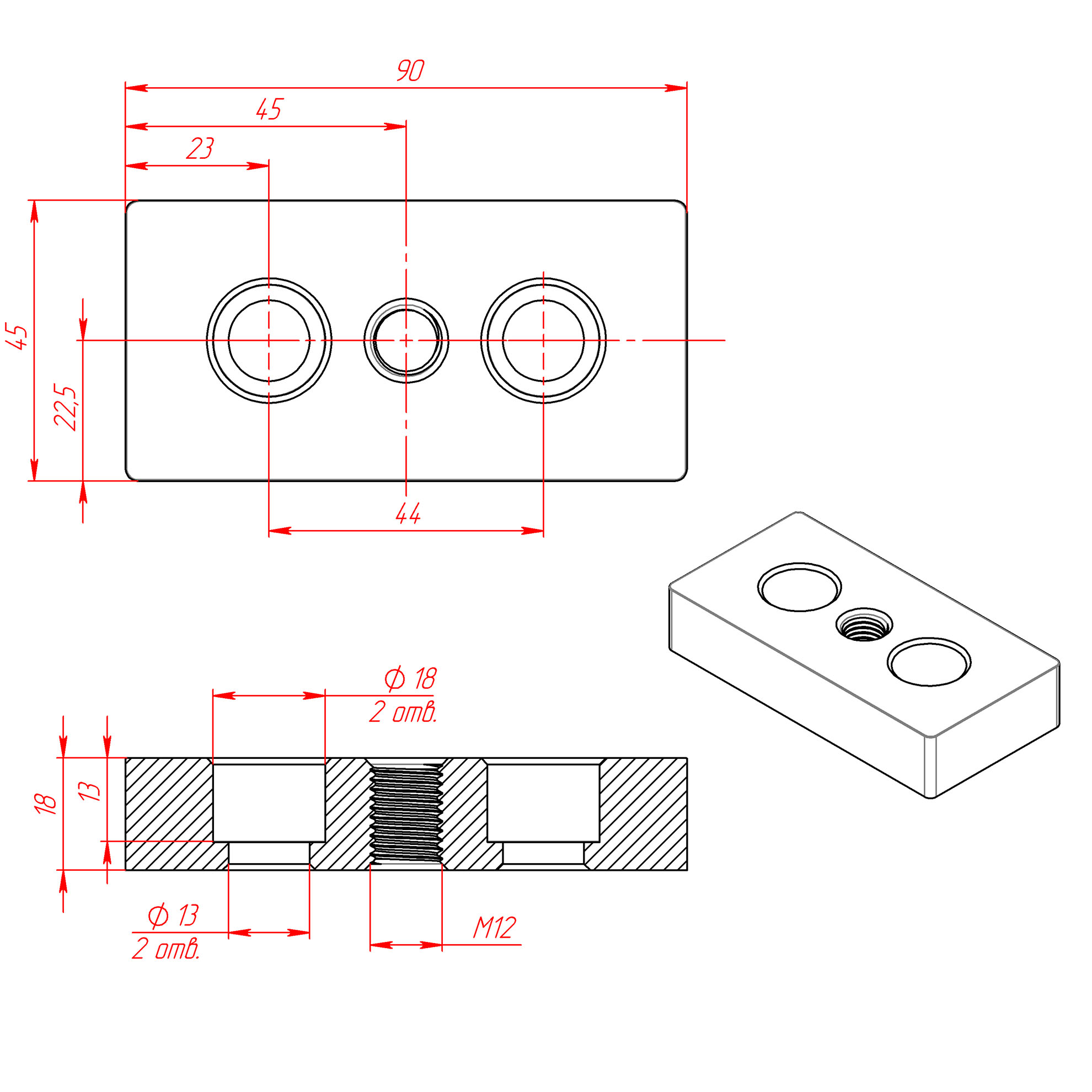 7003-сталь-М12 | Опорная плита стальная 45х90 (М12)
