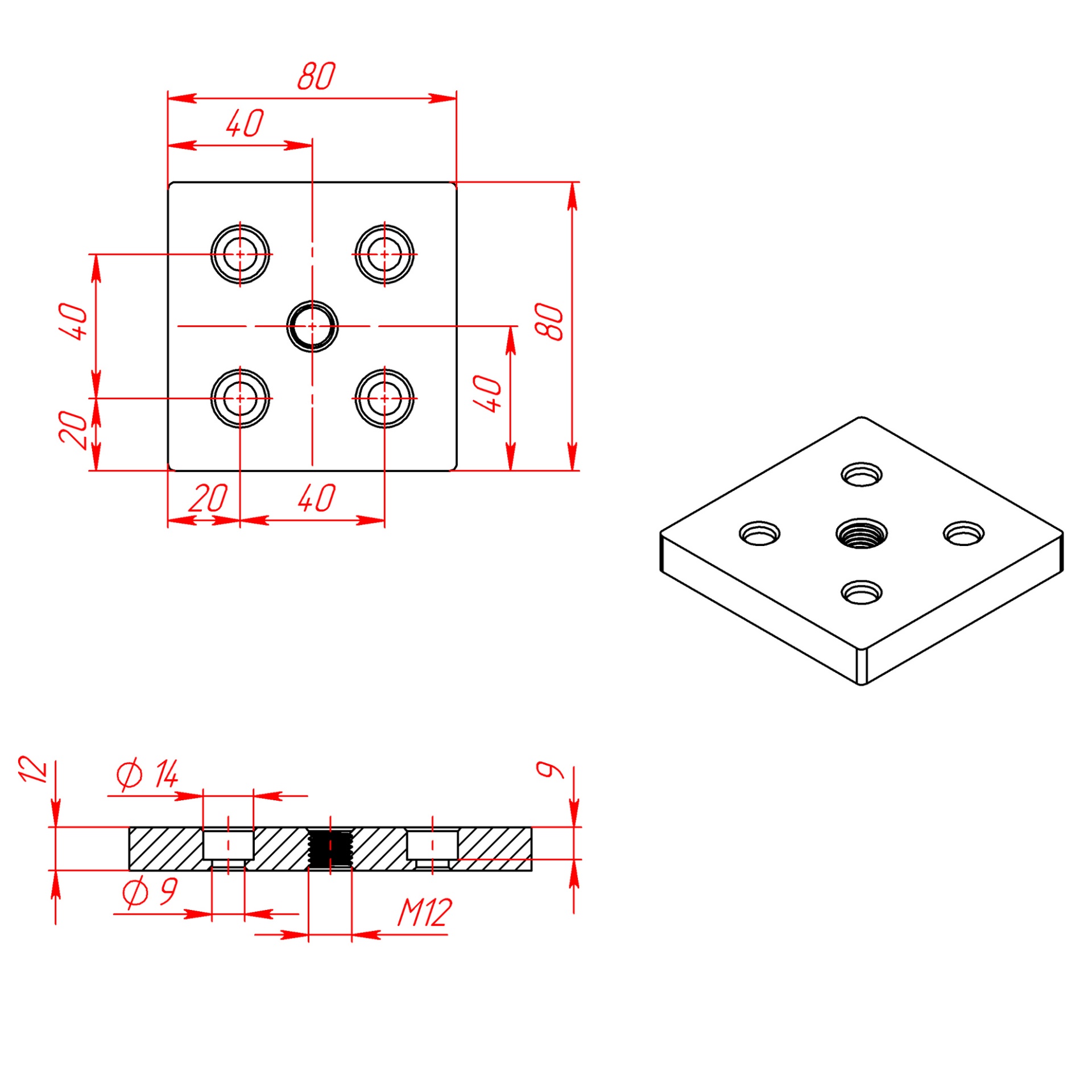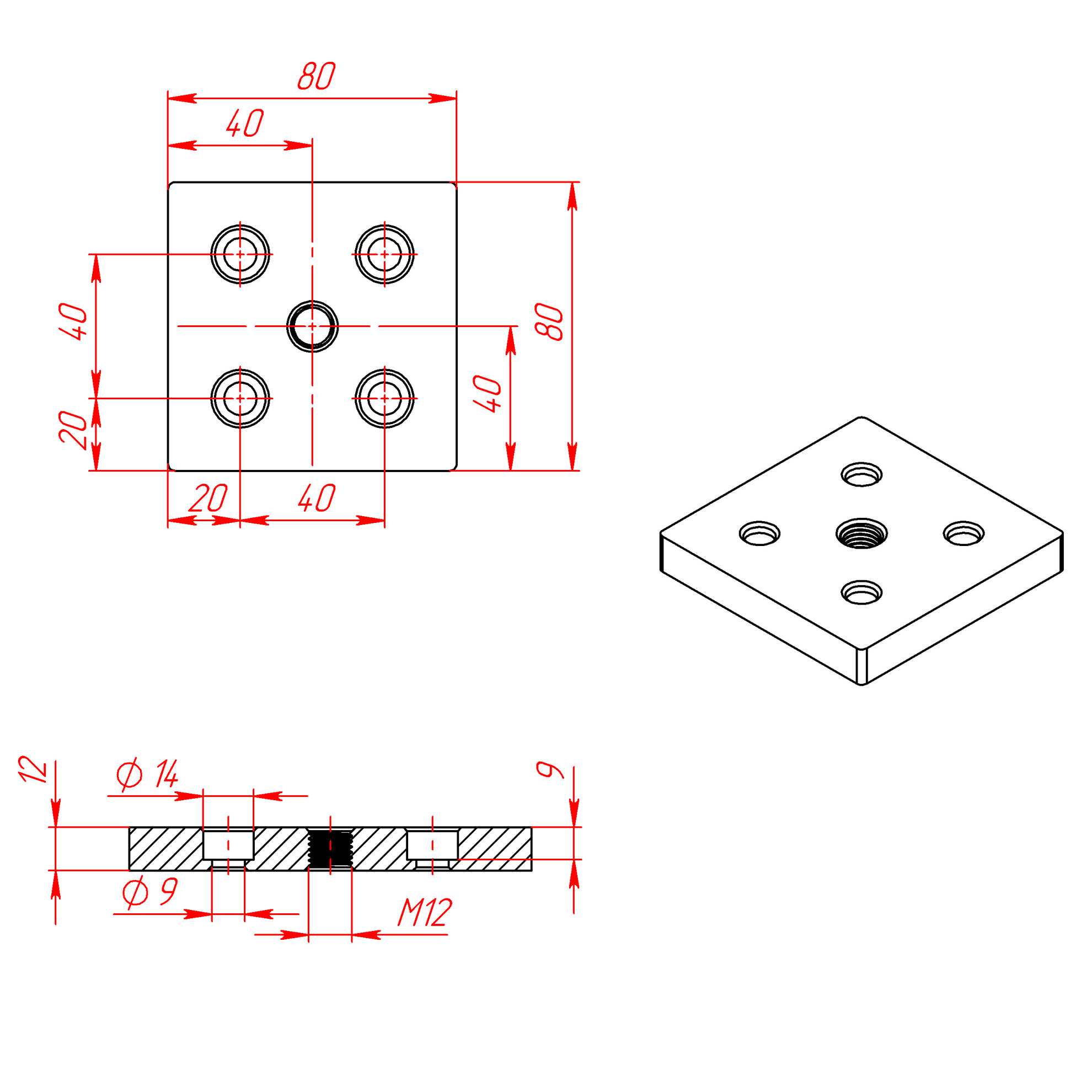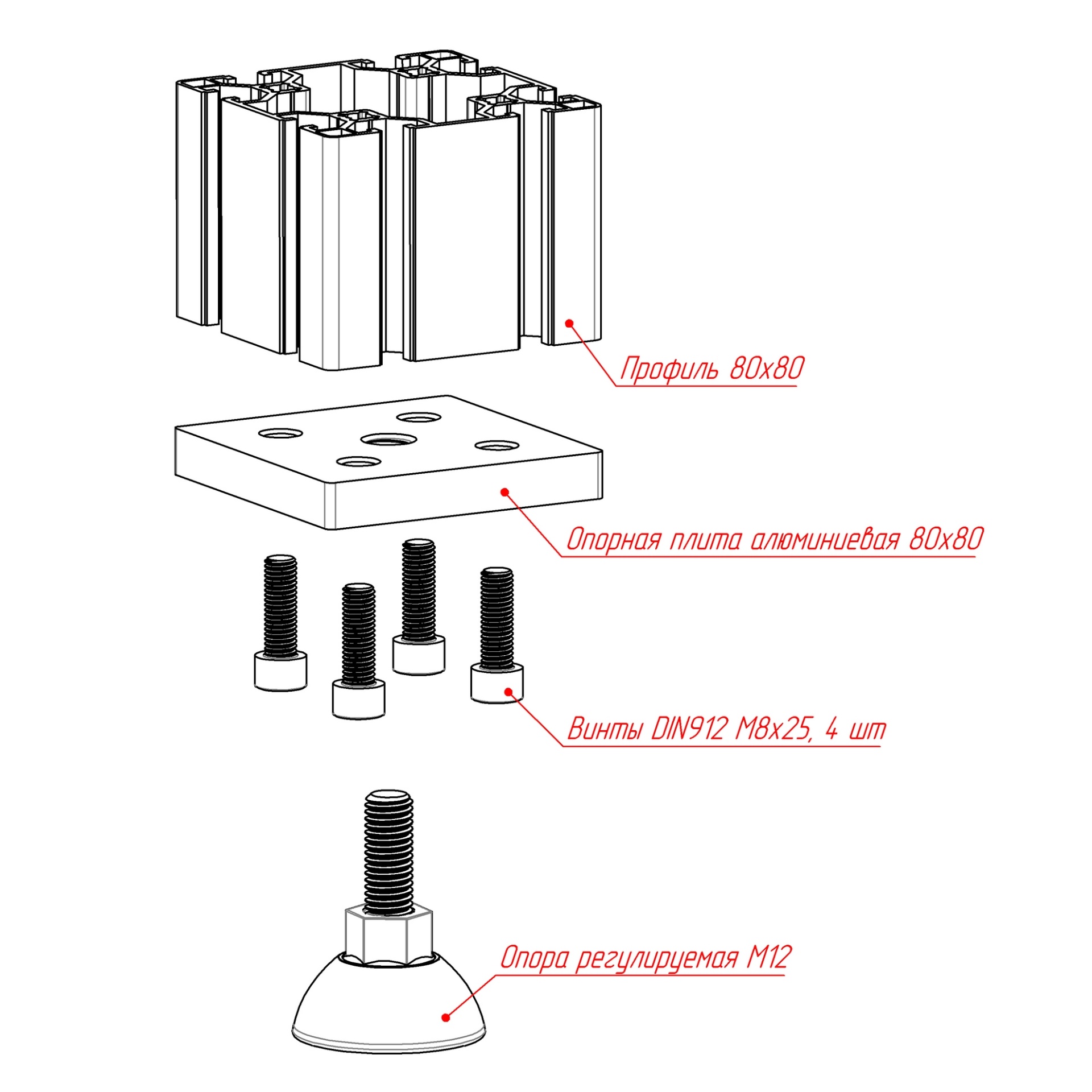 Надежное решение для установки регулируемых ножек с резьбой M12 в конструкционные алюминиевые профили размером 80х80 мм. Эта прочная и легкая опорная плита обеспечивает стабильность и удобство монтажа в различных конструкциях.