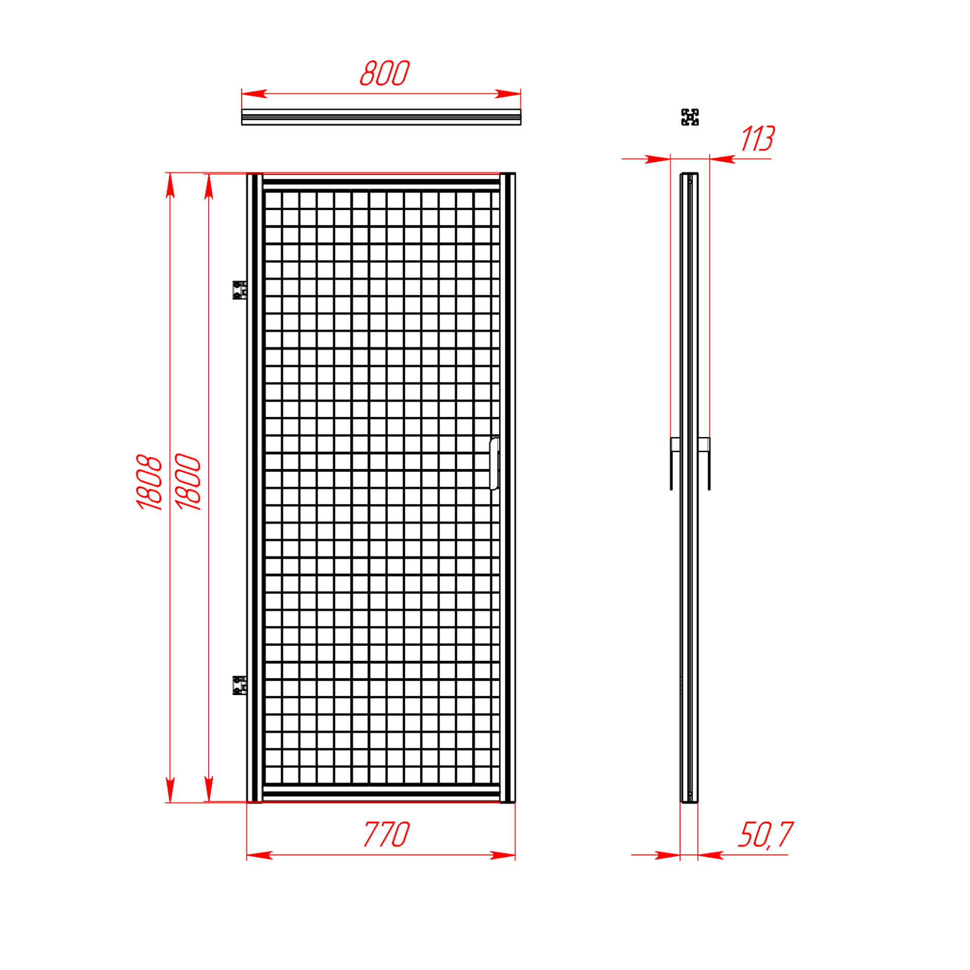 Дверь для секций ограждения 800 х 1800 мм используется в качестве барьера при сборке защитных промышленных ограждений из алюминиевого профиля RSI. Каркас двери состоит из алюминиевого профиля 45 х 45 мм, внутреннее наполнение - металлическая сетка с размером ячейки 50 х 50 мм.