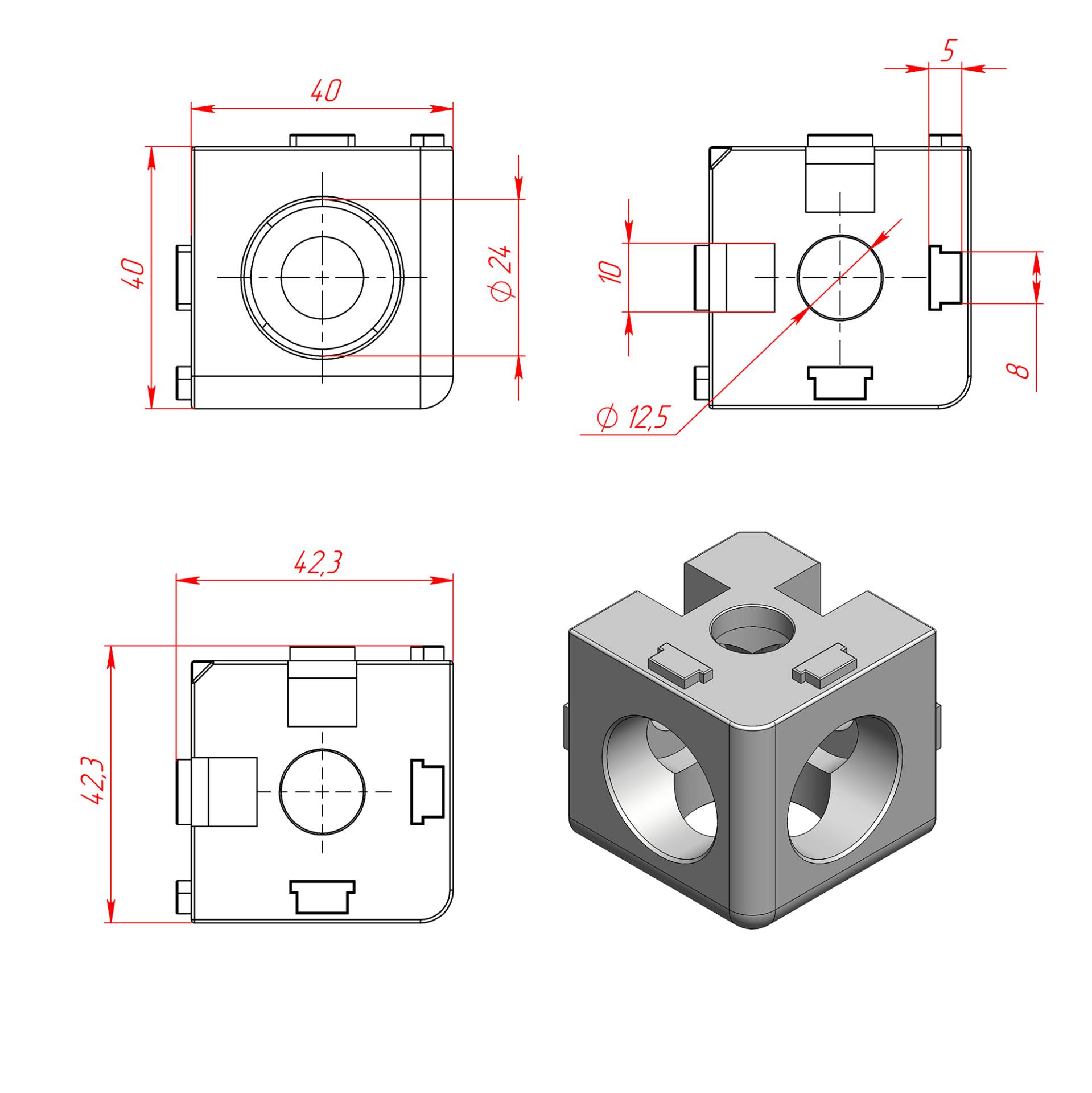 2071 | Трехсторонний кубический соединитель (к профилям серии 40)