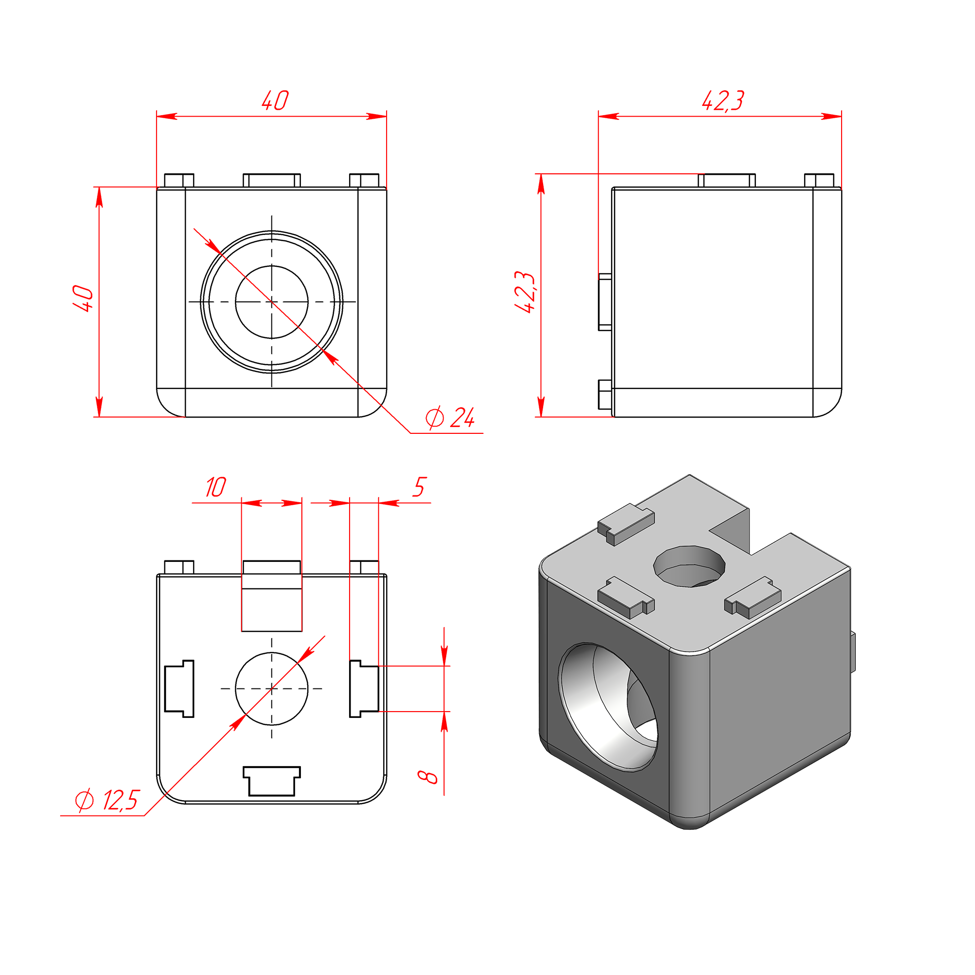 1038 | Угловой соединитель 40х40, паз 8/10