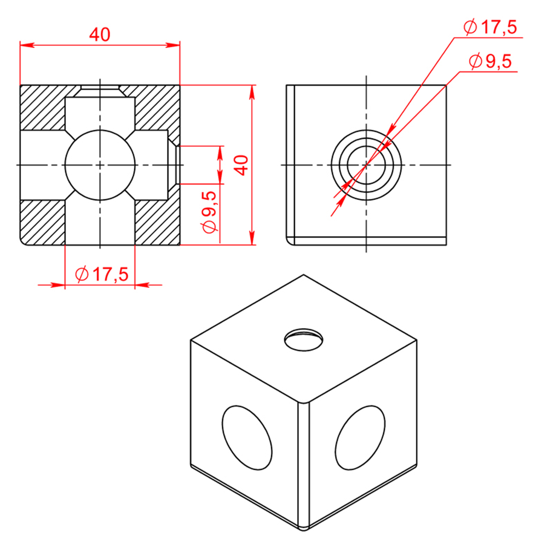 2070 | Двухсторонний кубический соединитель (к профилям серии 40)
