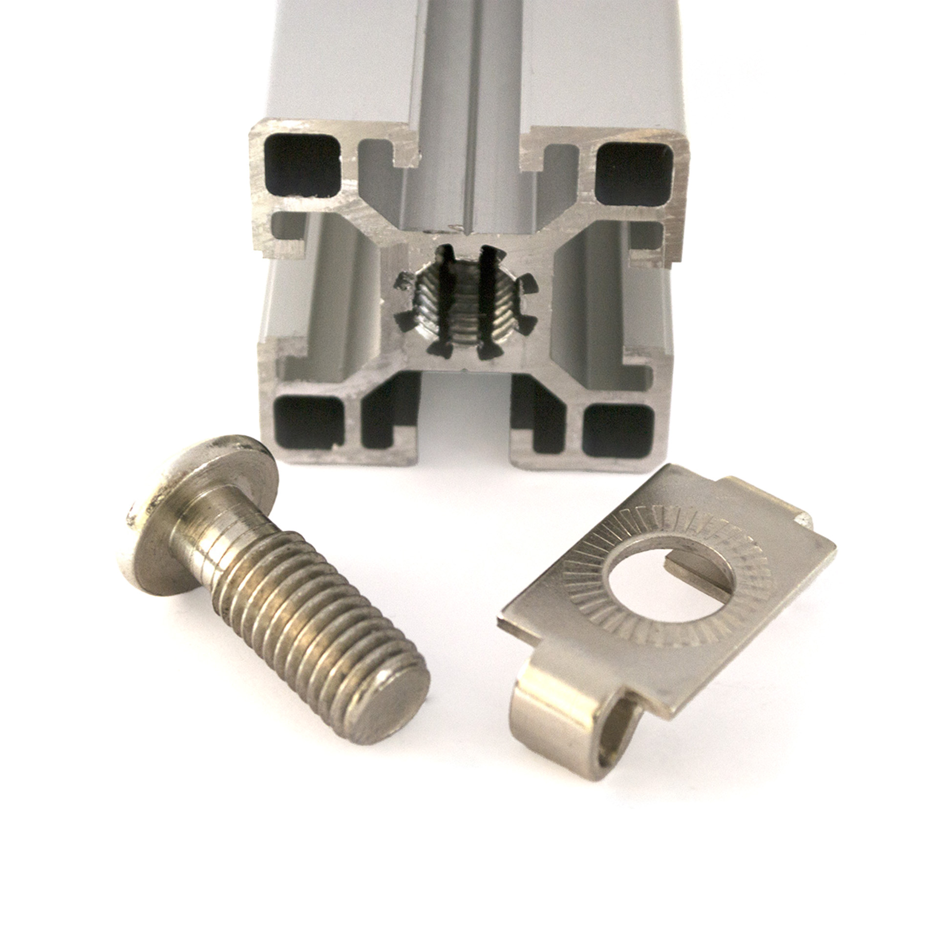 Внимание! Совместим со всеми профилями с пазом 10 мм, кроме профилей серии 40 с пазом 10 мм и усиленного профиля 45х90H. Для них винт М12х30 используется без фиксатора.