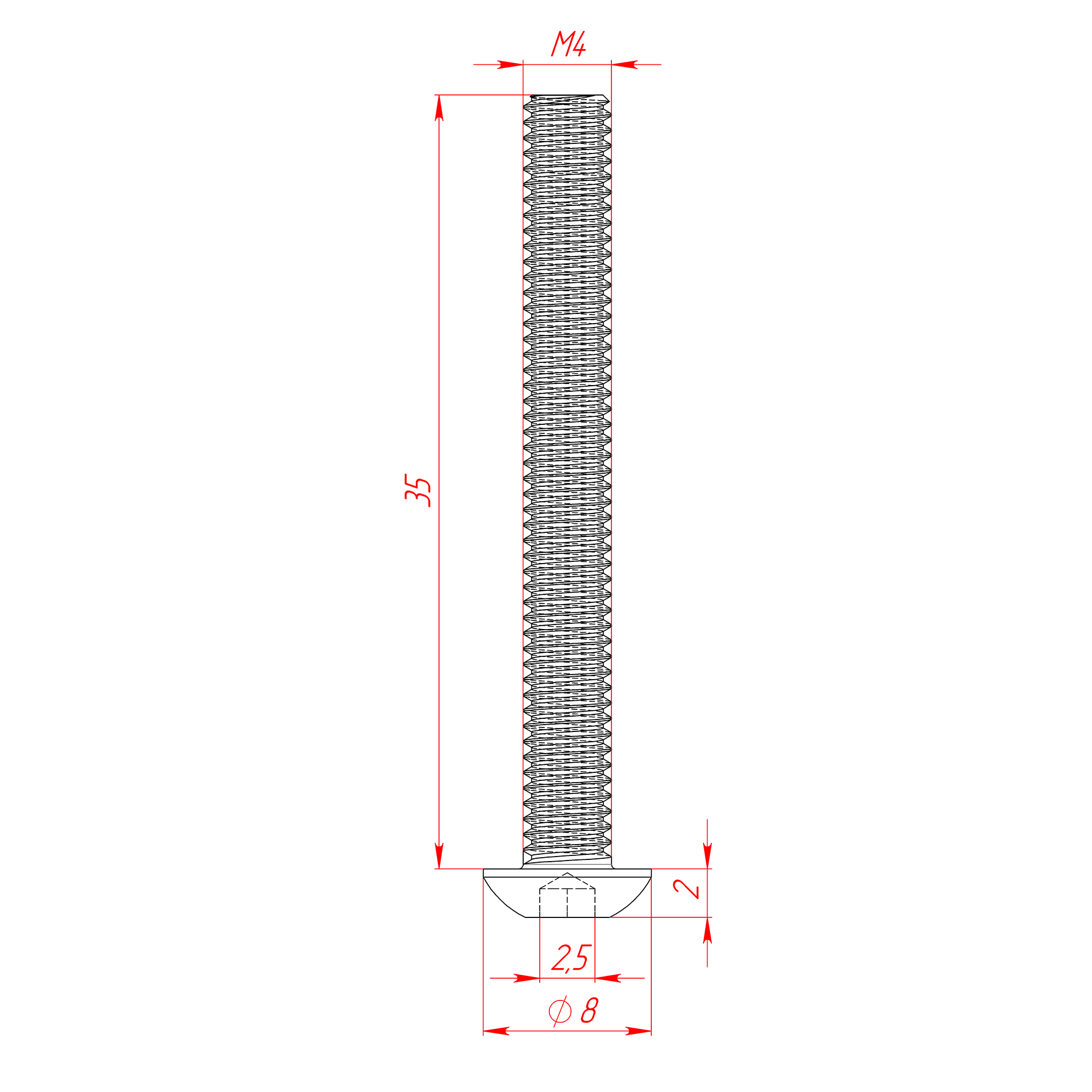 Винт М4х35 DIN912 (полуцилиндр) кл. пр. 8.8