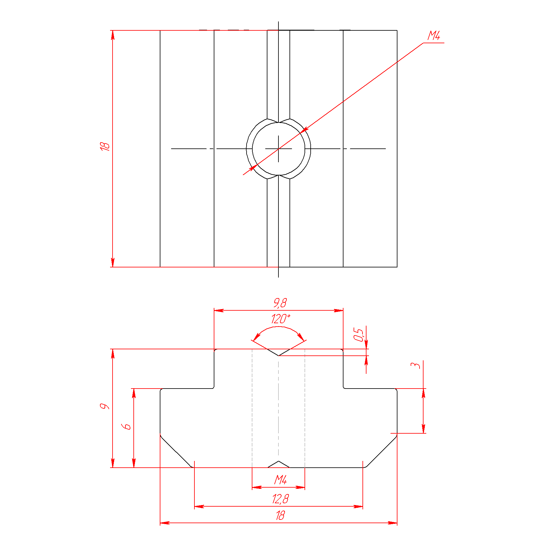 5015 | Т-гайка, Паз 10, М4