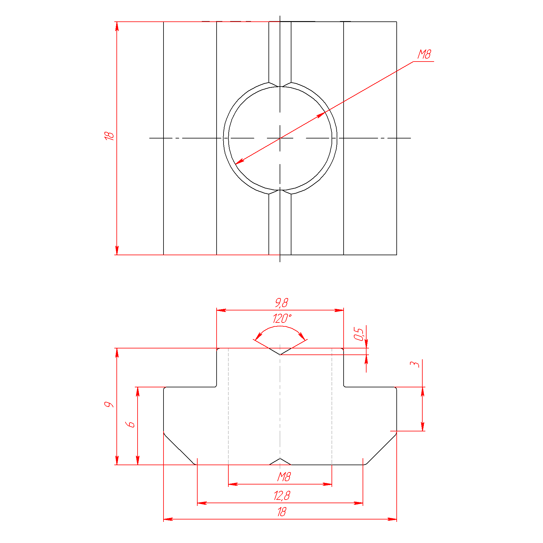 5061 | Сухарь пазовый c прижимным шариком, паз 10, М8
