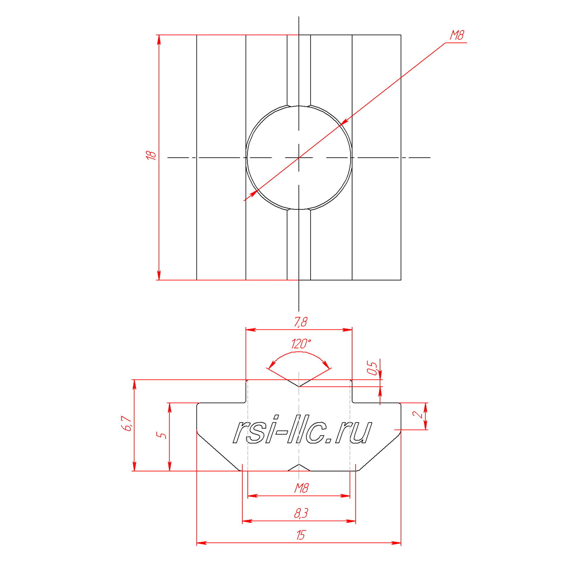 2A12.A41A.01 | Сухарь пазовый c фиксатором, паз 8, серия 30, М8
