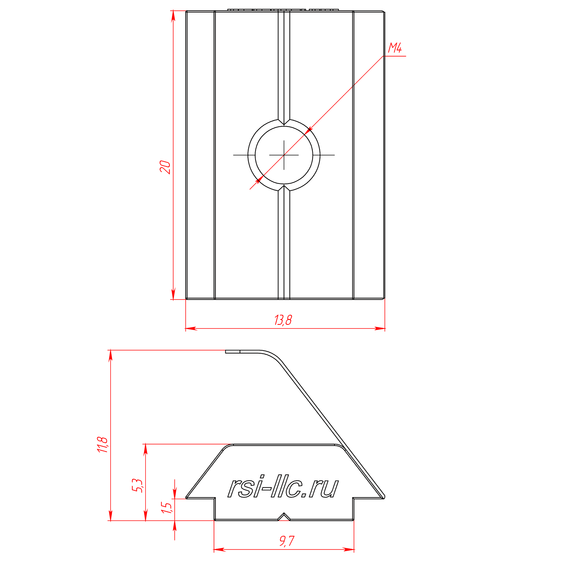 5186AL | Сухарь пазовый алюминиевый, паз 10, М4