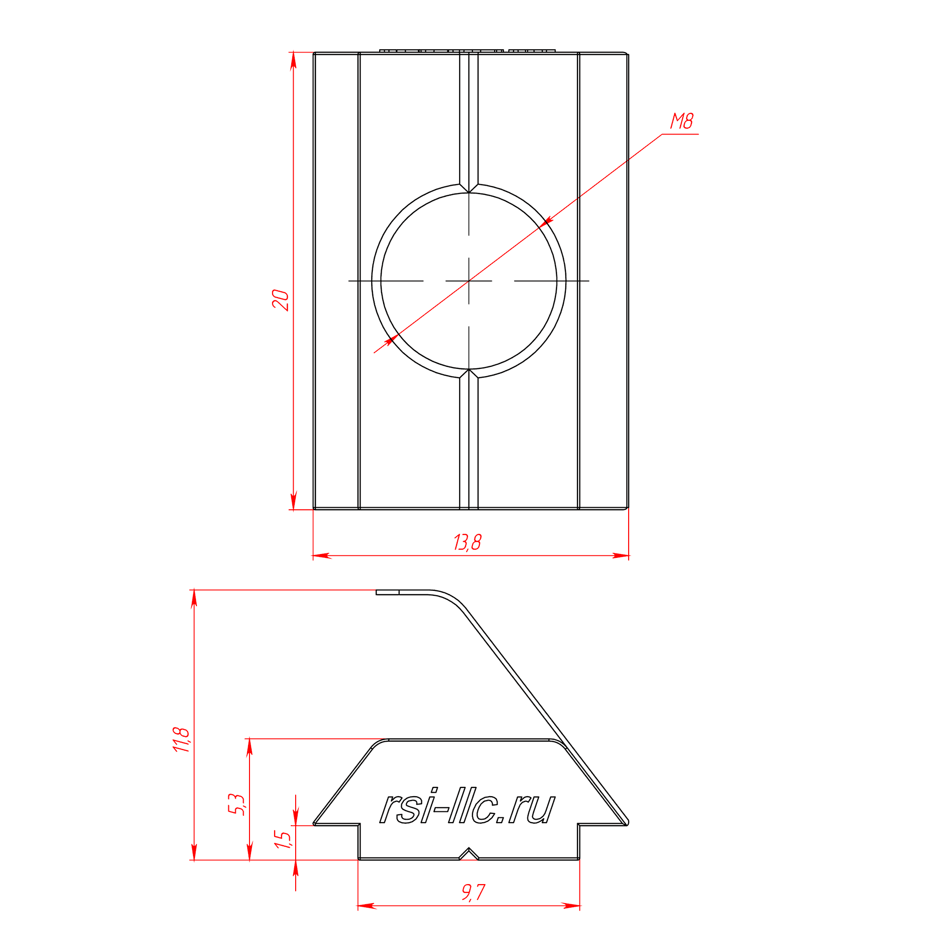 5074AL | Сухарь пазовый алюминиевый, паз 10, М8