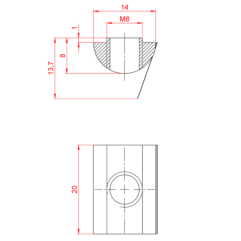 5071AL | Сухарь пазовый алюминиевый, паз 8, М8, серия 40
