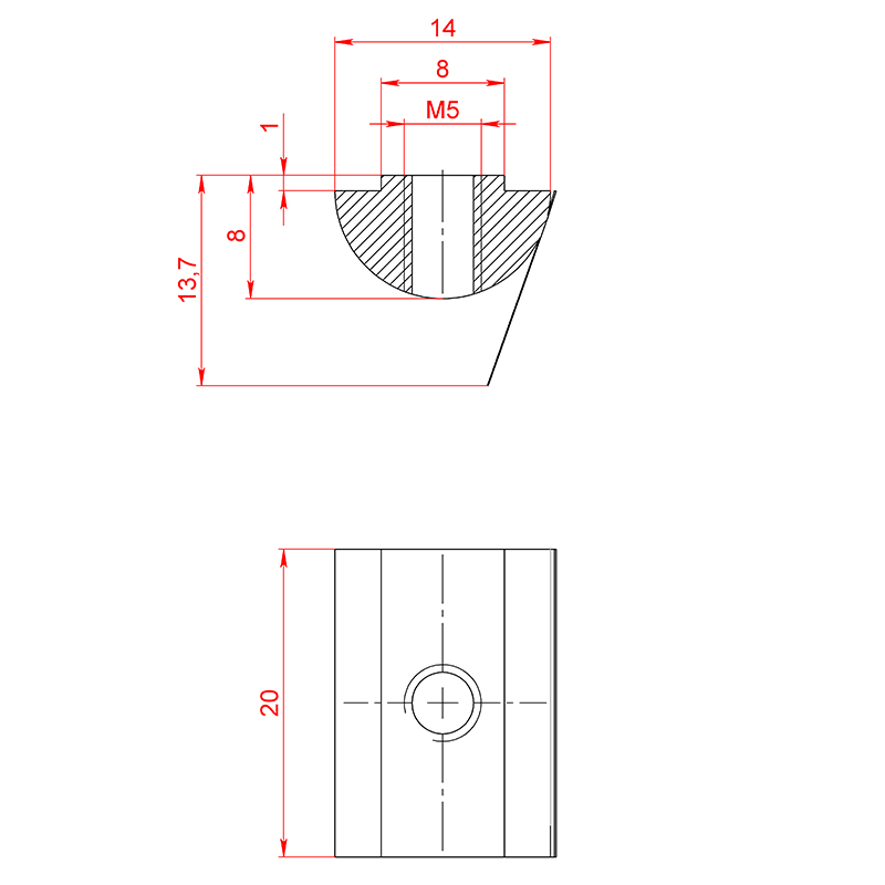 5069AL | Сухарь пазовый алюминиевый, паз 8, М5, серия 40