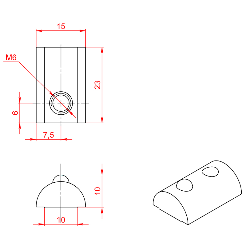 5073AL | Сухарь пазовый алюминиевый, паз 10, М6