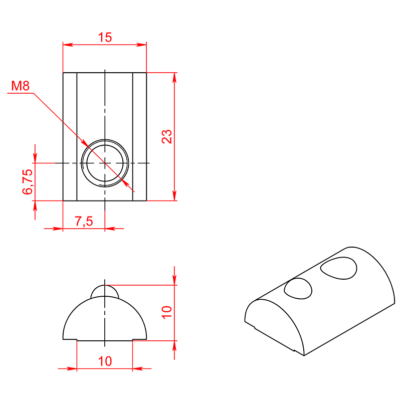 5074AL | Сухарь пазовый алюминиевый, паз 10, М8