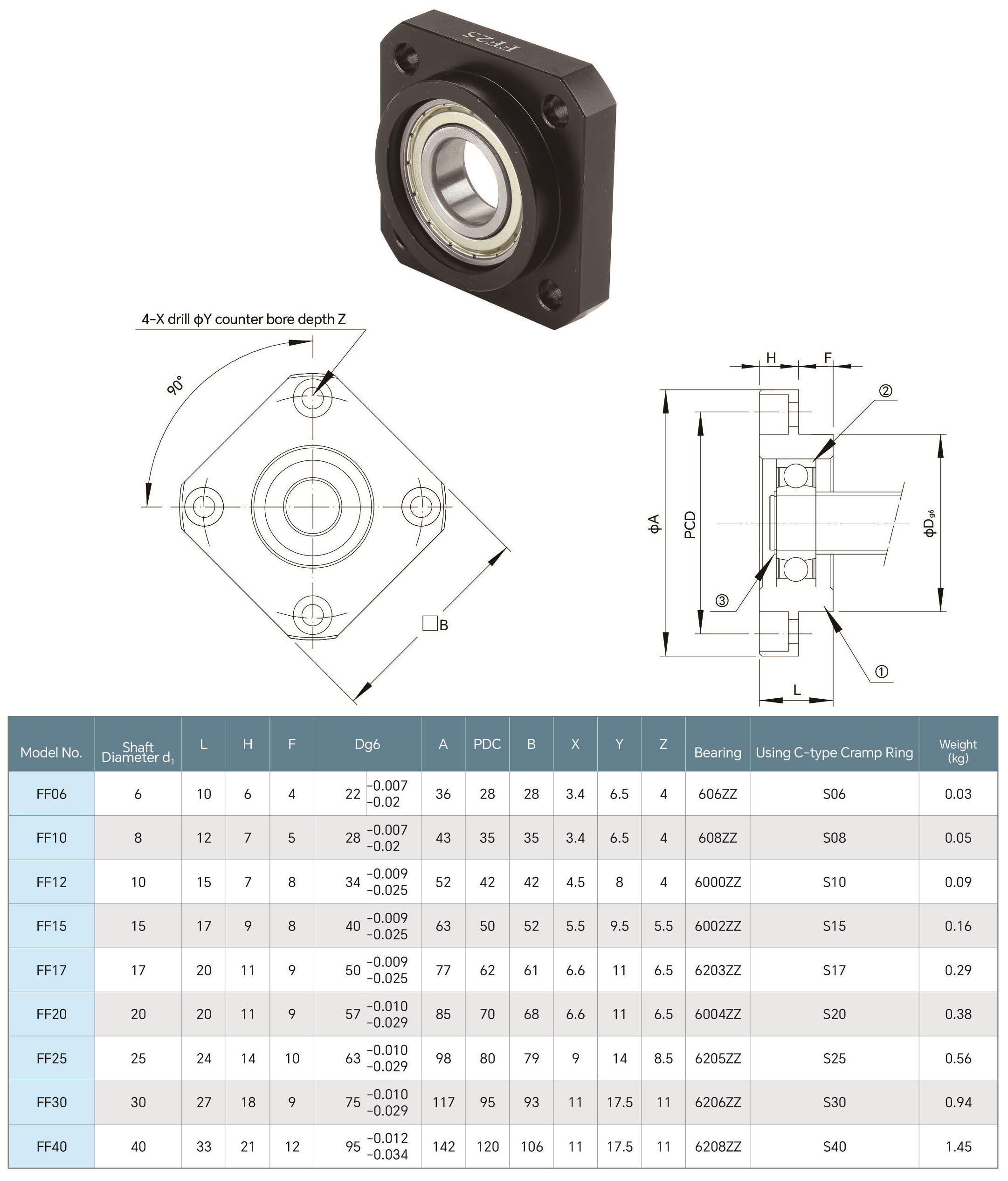 FF-25 | Плавающая фланцевая подшипниковая опора D25 мм