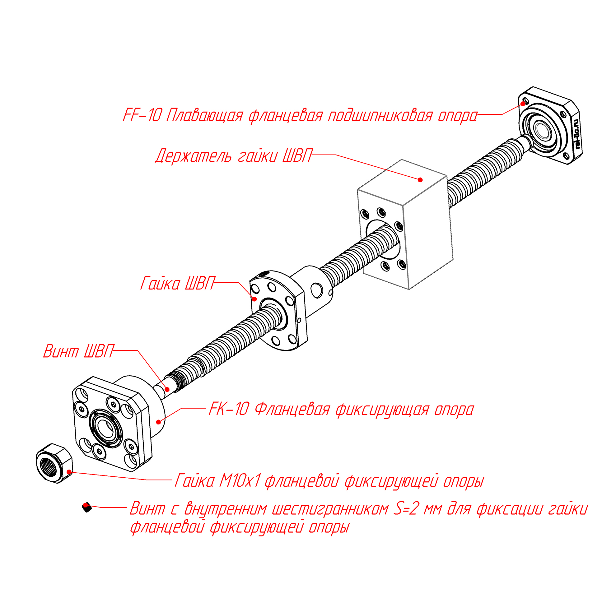 | Рекомендуемый диаметр винта ШВП | 12–16 мм |