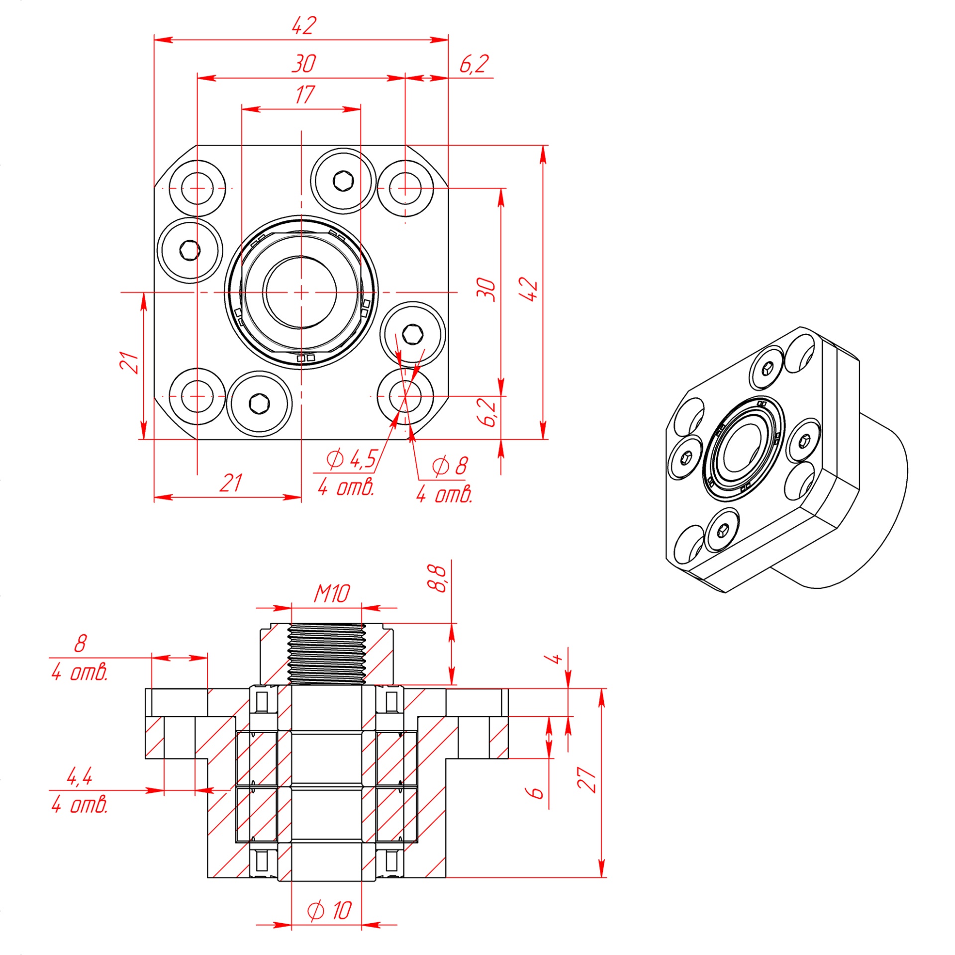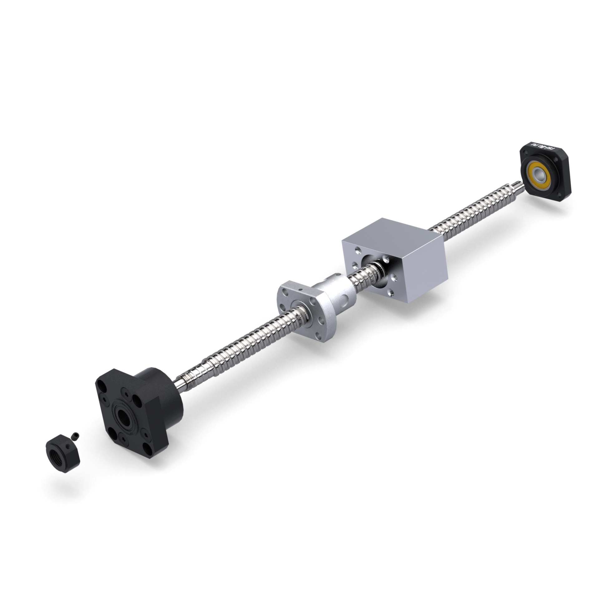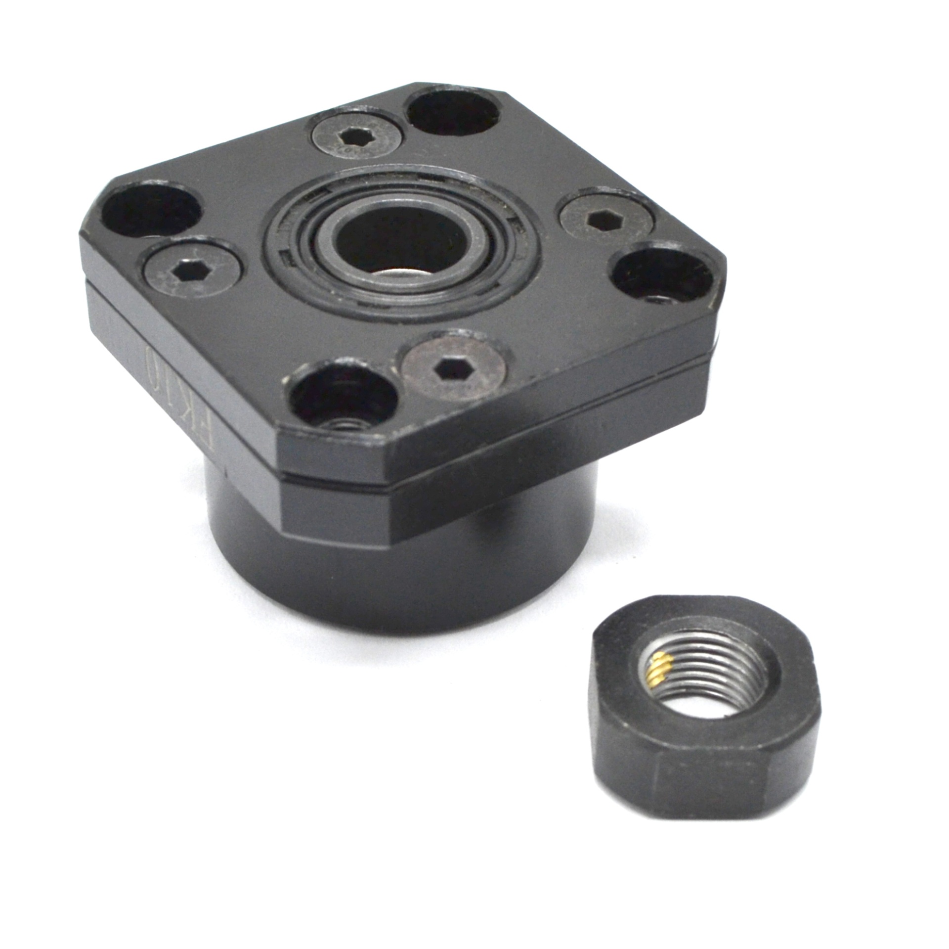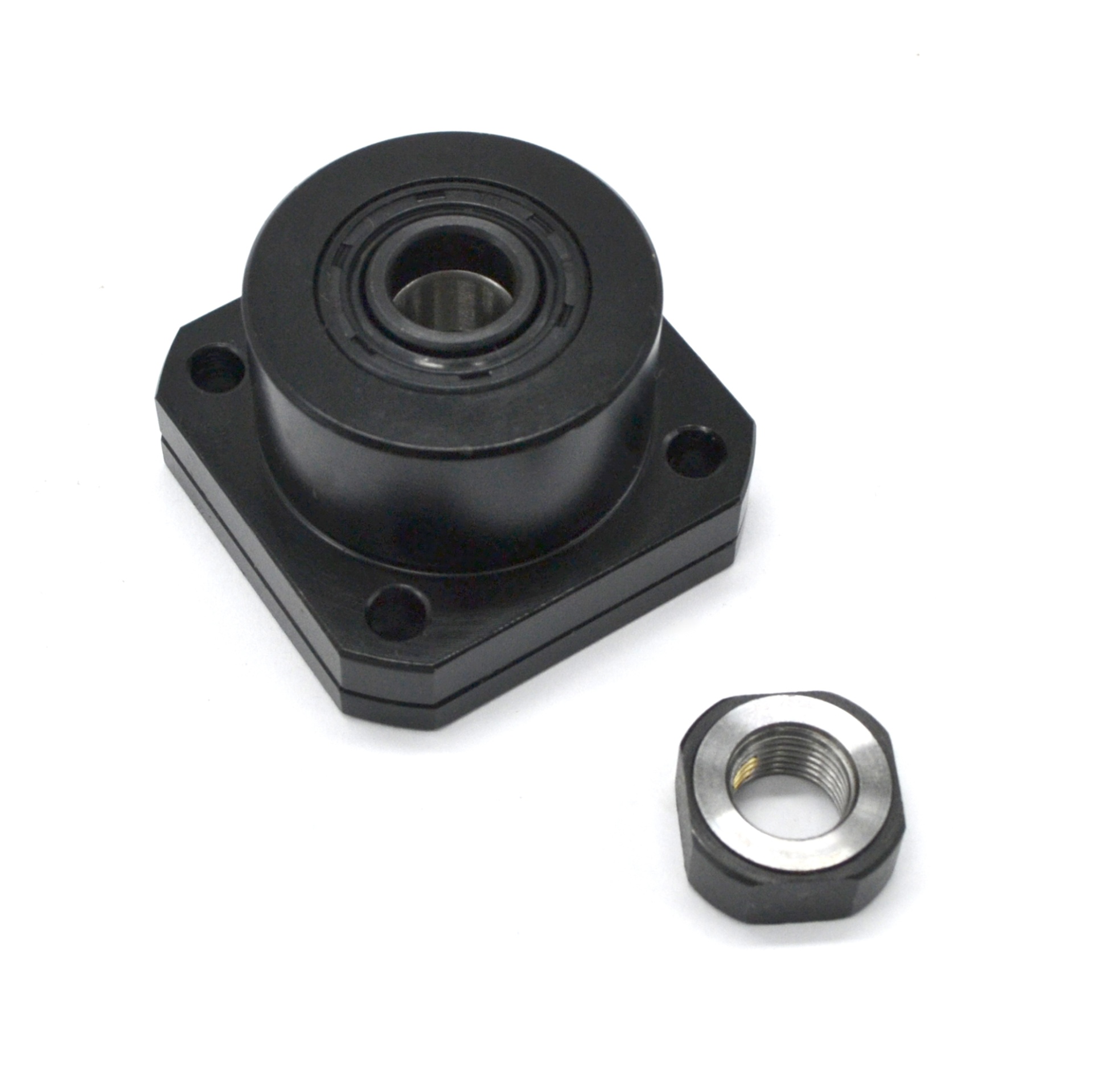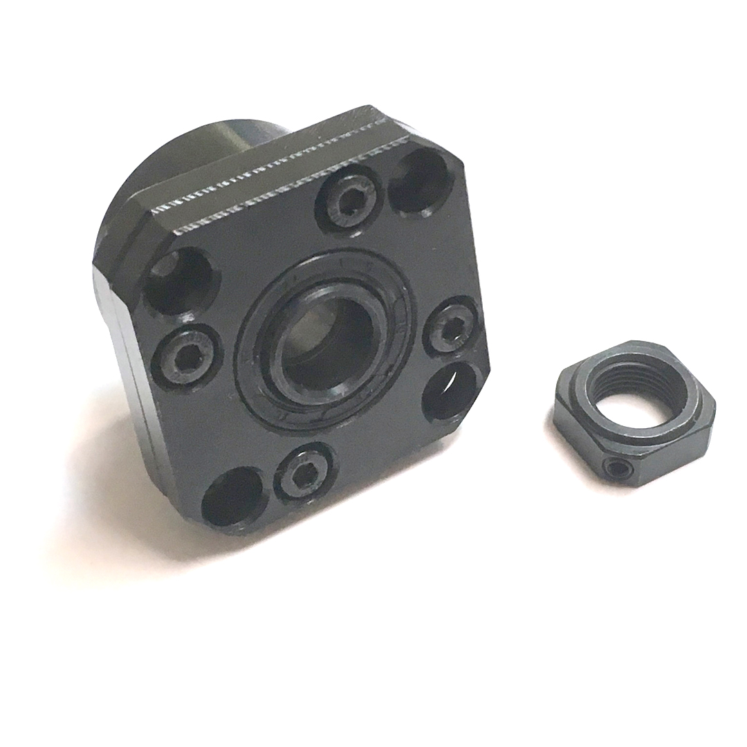 Фланцевая фиксирующая опора для винтов шарико-винтовых передач (ШВП). Обеспечивает жёсткую радиальную фиксацию и создание осевого натяжения, поставляется в комплекте с фланцем и стопорной гайкой.
