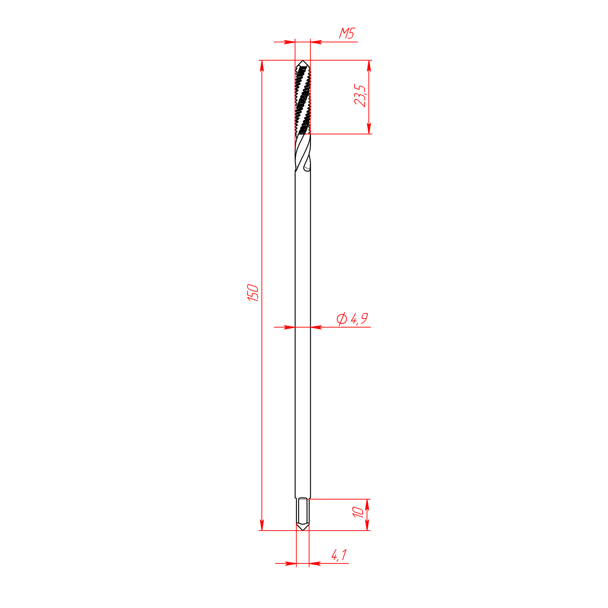 RSI-M5/0.8 | Метчик М5/0.8 c винтовой канавкой, однопроходный