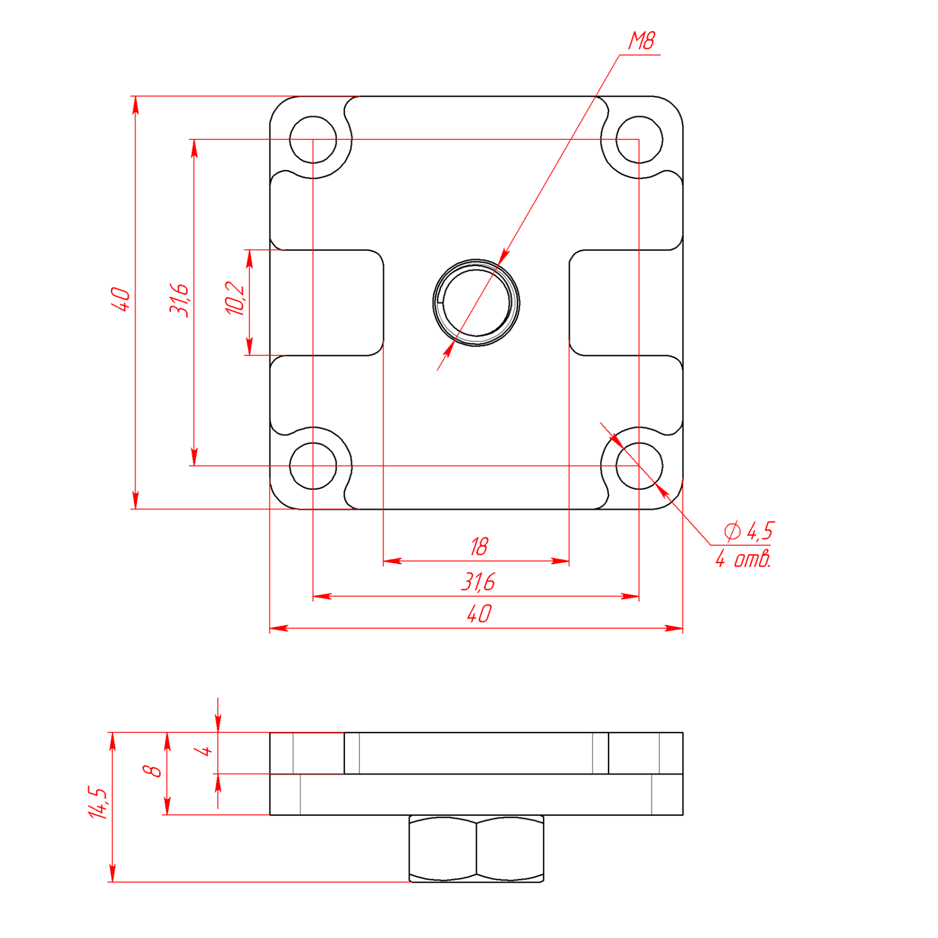 TS-4040-Connector-plastic | Соединитель пластиковый к телескопическому профилю 40х40 для шарниров 30х30 и 40х40