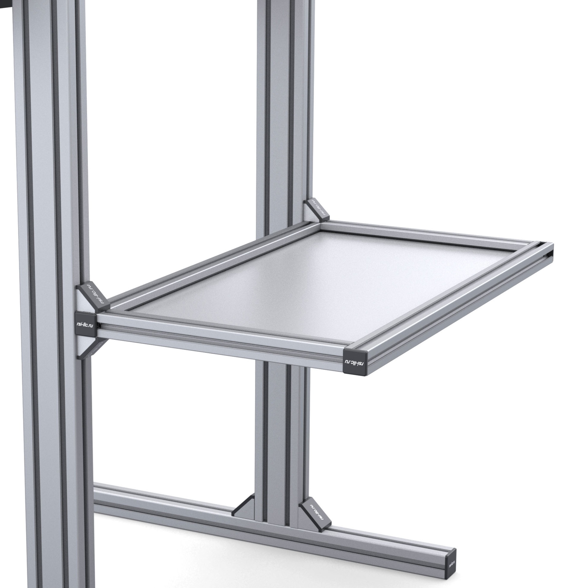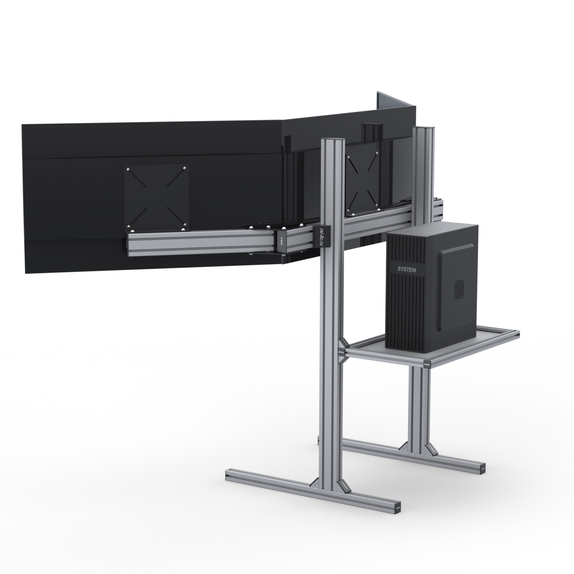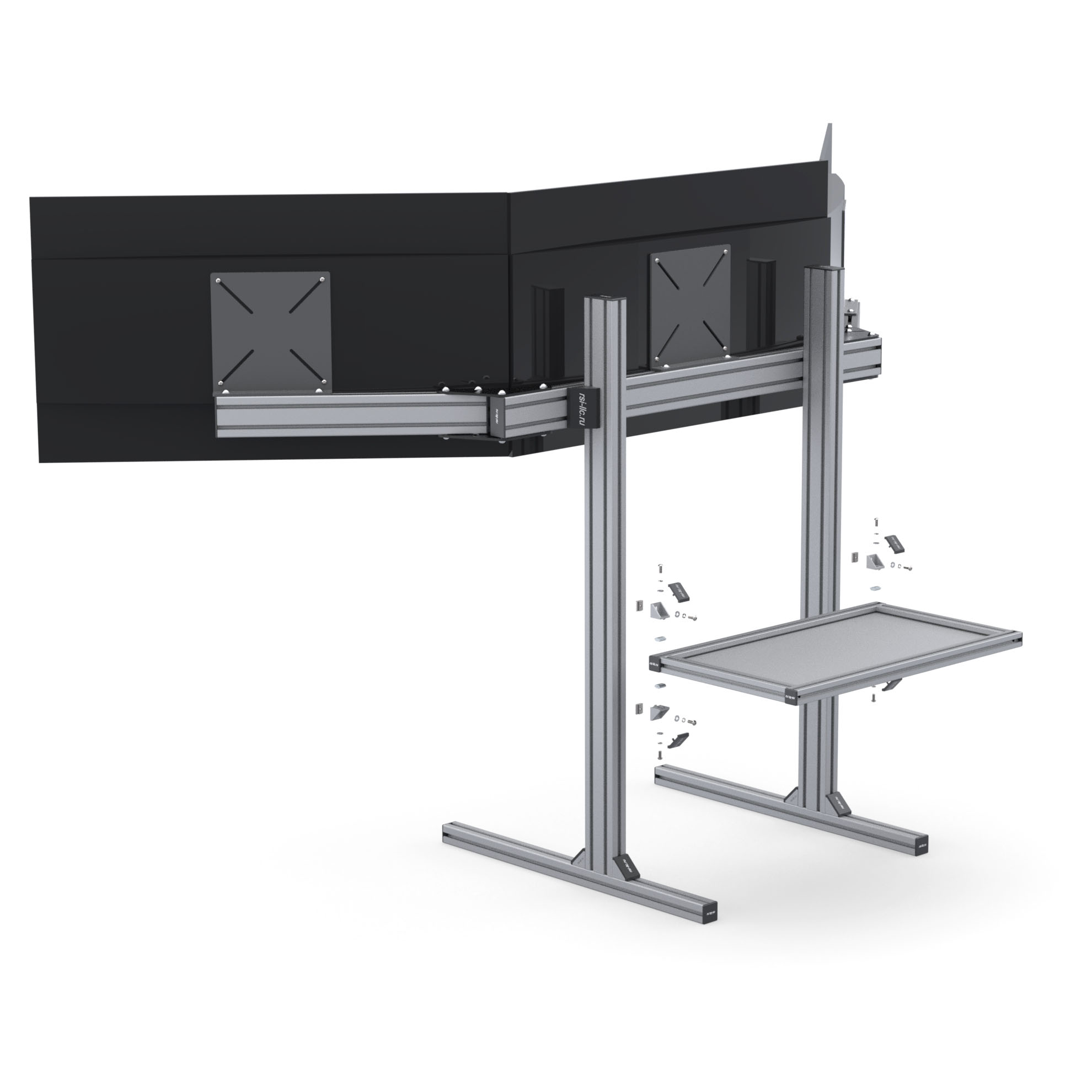 Стильная и прочная полка для системного блока — самостоятельная сборка из стального листа 2 мм и анодированных алюминиевых профилей серии 30 (паз 8 мм). Предназначена для монтажа в кокпиты RSI, обеспечивает аккуратное расположение корпуса и удобный доступ к кабелям.