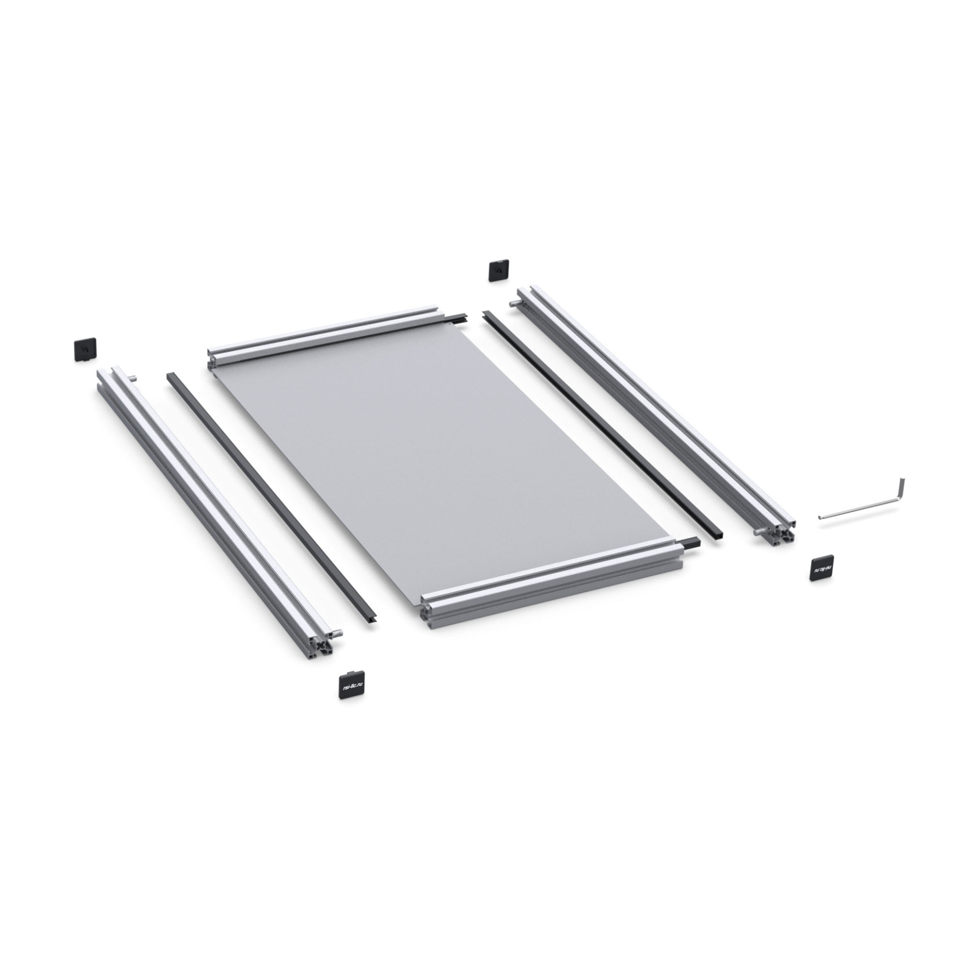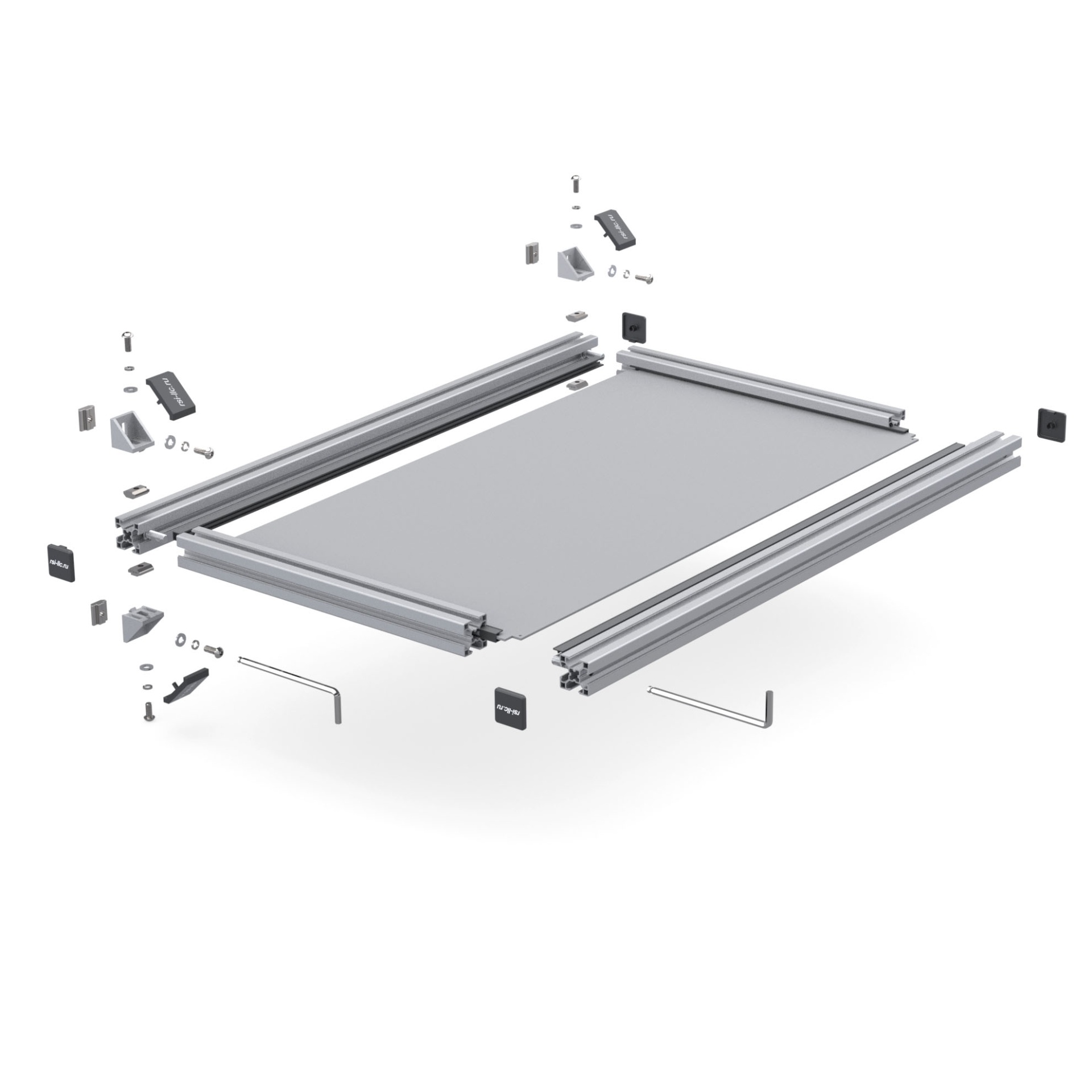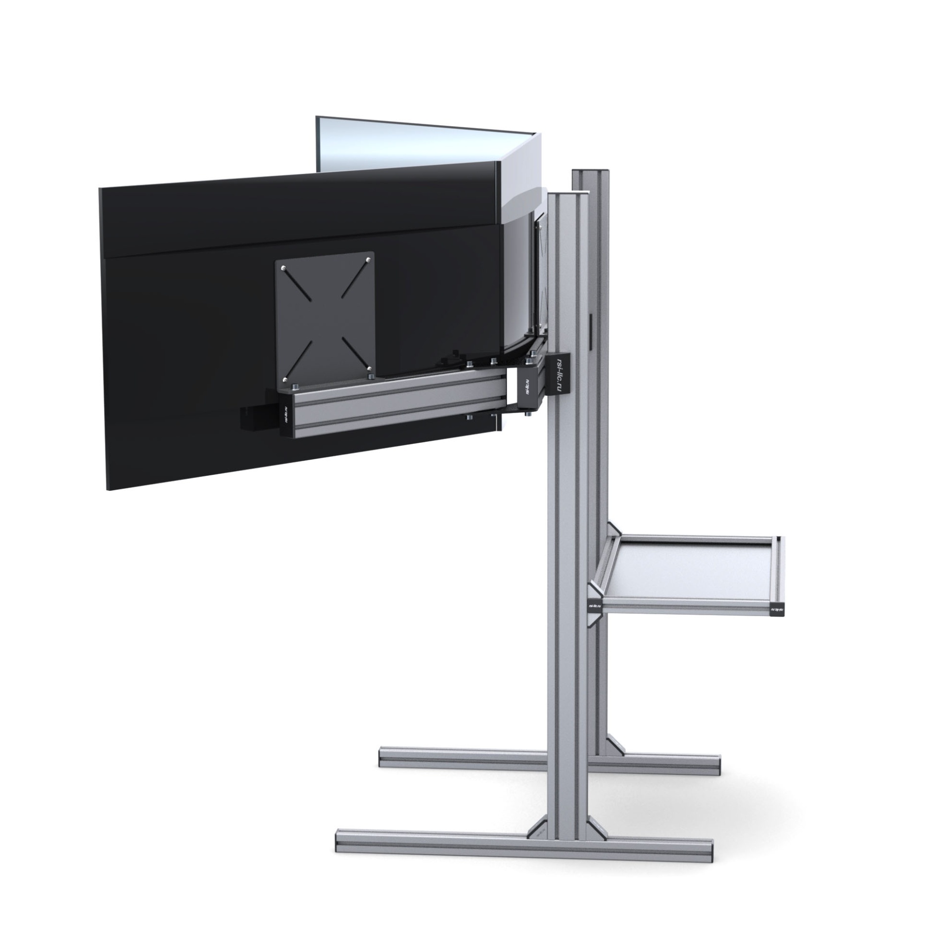 Стильная и прочная полка для системного блока — самостоятельная сборка из стального листа 2 мм и анодированных алюминиевых профилей серии 30 (паз 8 мм). Предназначена для монтажа в кокпиты RSI, обеспечивает аккуратное расположение корпуса и удобный доступ к кабелям.